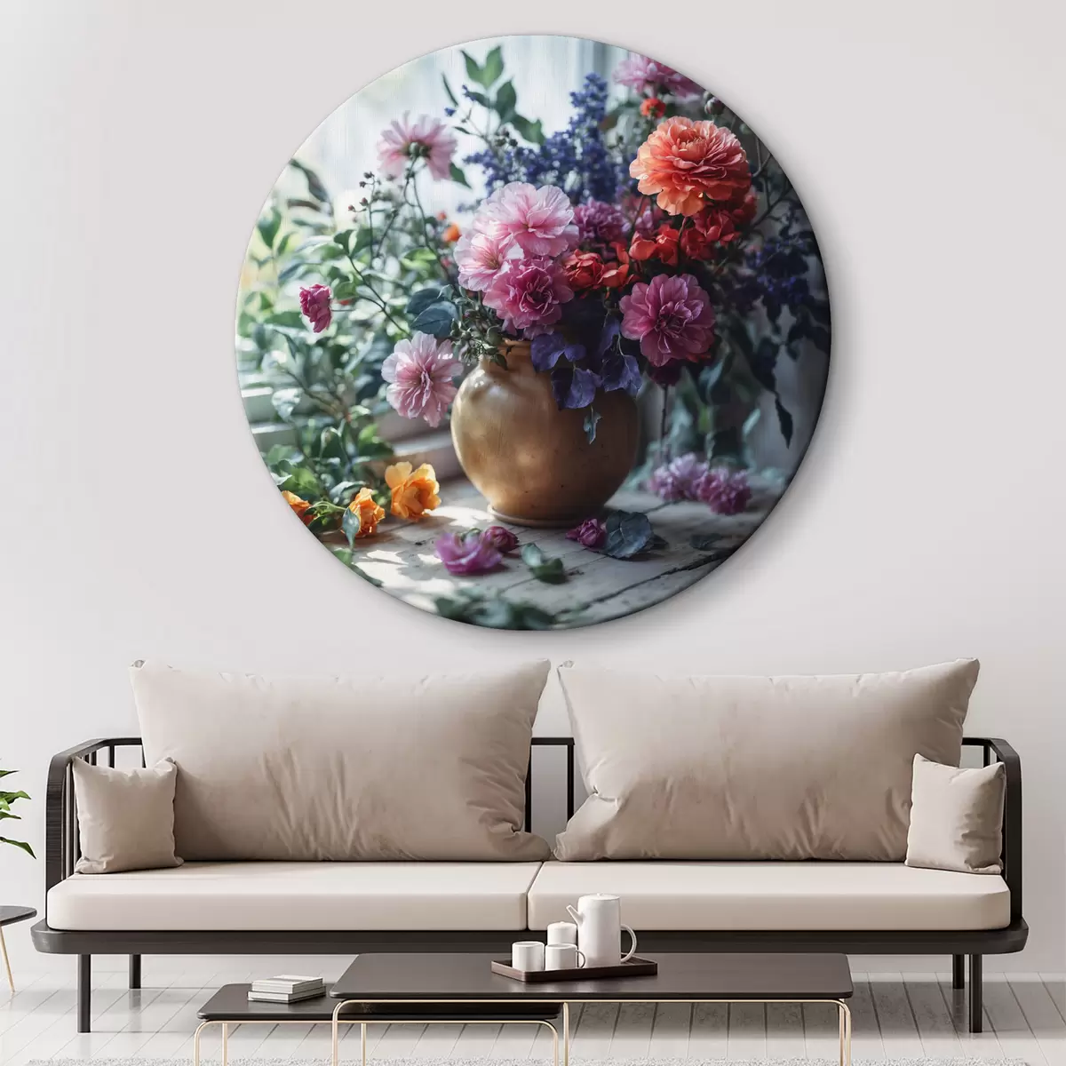 Runde Wandbilder Blumen in einer Vase auf einer Fensterbank Nr r39176
