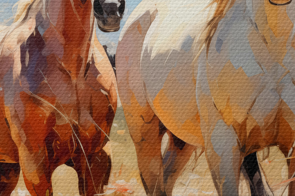 Drei Materialtypen stehen zur Verfügung: Economic Canvas - ein dichtes und haltbares Material für den Digitaldruck, identisch mit Malerleinwand, wasserfeste Oberfläche, realistische Wiedergabe von Details, mittelkörniges Material. Premium Canvas - die Textur ähnelt der einer Malerleinwand (verwobene kleine Fäden). Weiche, detaillierte Wiedergabe des Bildes auf einer matten Oberfläche. Eco-Premium - hochwertiges Gewebe aus 100% Baumwolle. Dank der natürlichen Baumwollfasern ist das Material langlebig und verschleißfest. Hervorragende Farbwiedergabe und Detailtreue.