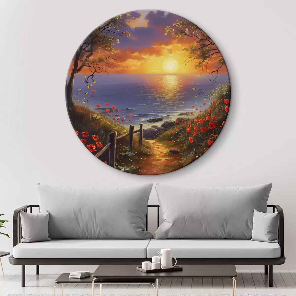 Runde Wandbilder Wunderschöner Sonnenuntergang am Wasser Nr r39200