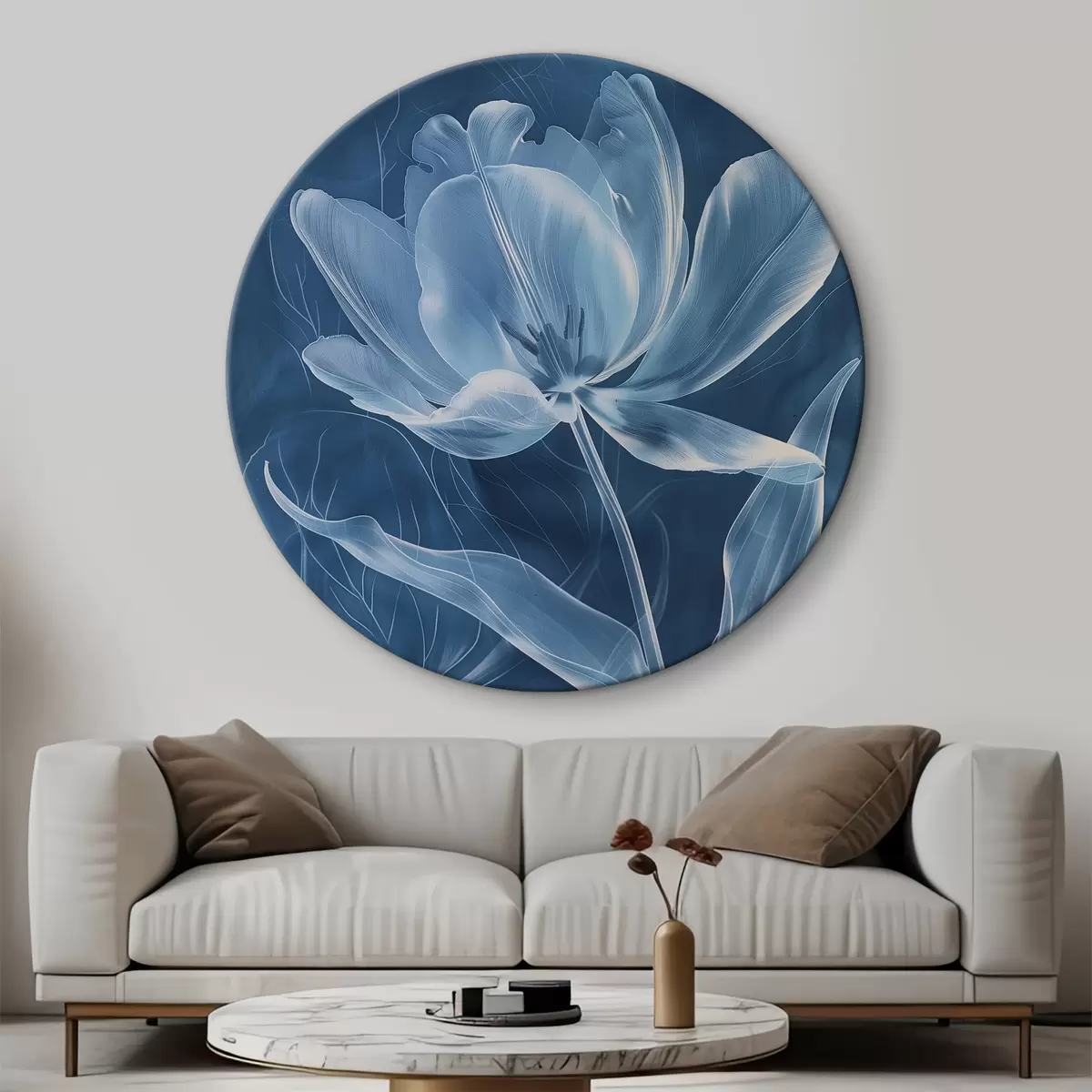 Runde Wandbilder Abstrakte Blume auf blauem Hintergrund Nr r39234