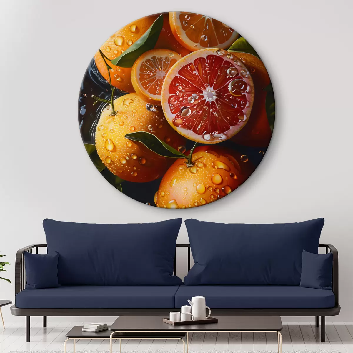 Runde Wandbilder Orangen und Grapefruit auf dunklem Hintergrund Nr r39238