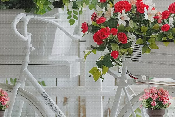 Runde Wandbilder Fahrrad und Blumenkorb im Provence-Stil r39242