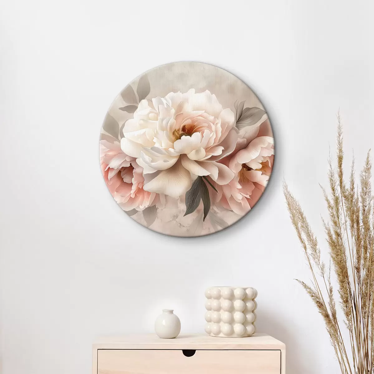 Runde Wandbilder abstrakter Strauß Pfingstrosen in Rosatönen r39324