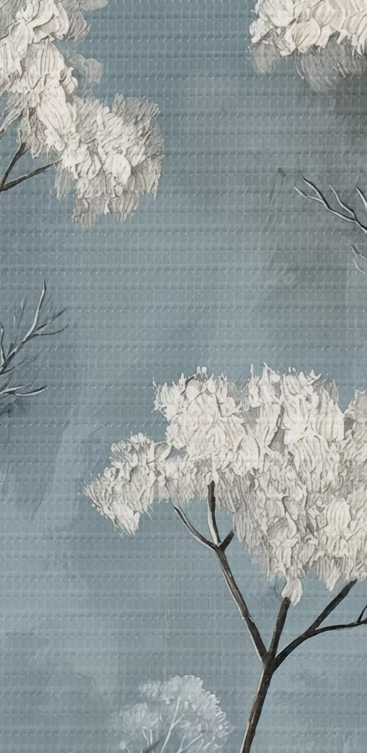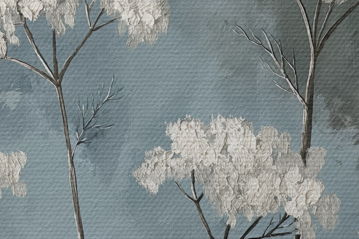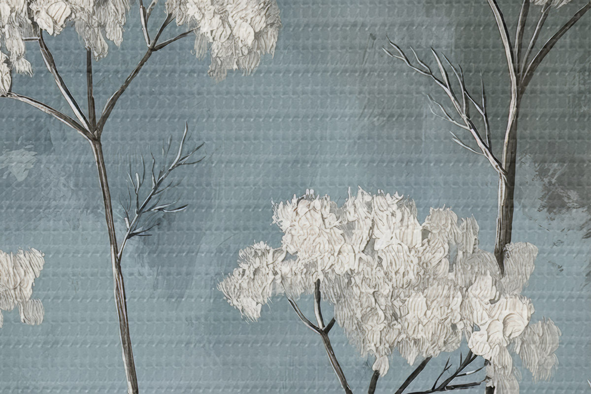 Runde Wandbilder Ölgemälde von zarten weißen Blumen auf blauem Hintergrund r39325