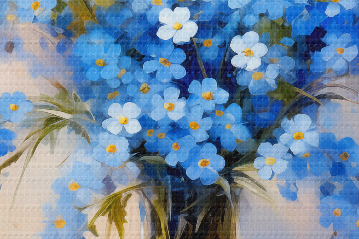 Runde Wandbilder Blumenstrauß aus blauen Wildblumen in einer Glaskaraffe Ölgemälde Nr r39331
