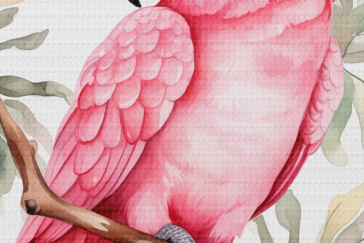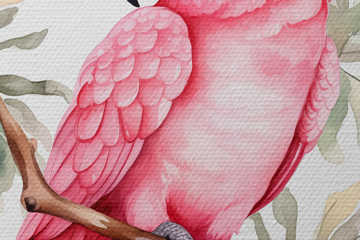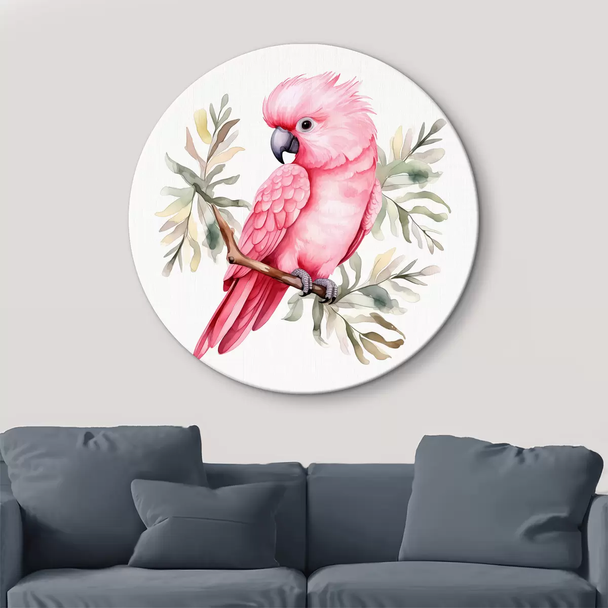 Runde Wandbilder Rosa Kakadu Papagei sitzt auf einem Zweig Aquarell Nr r39334