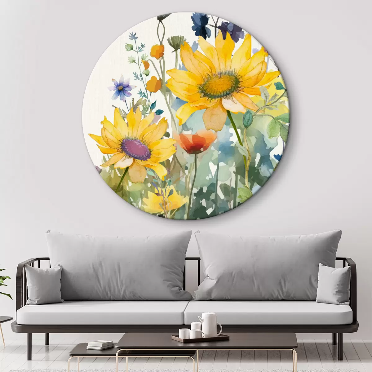 Runde Wandbilder Bunte Aquarell-Wildblumen Nr r39338