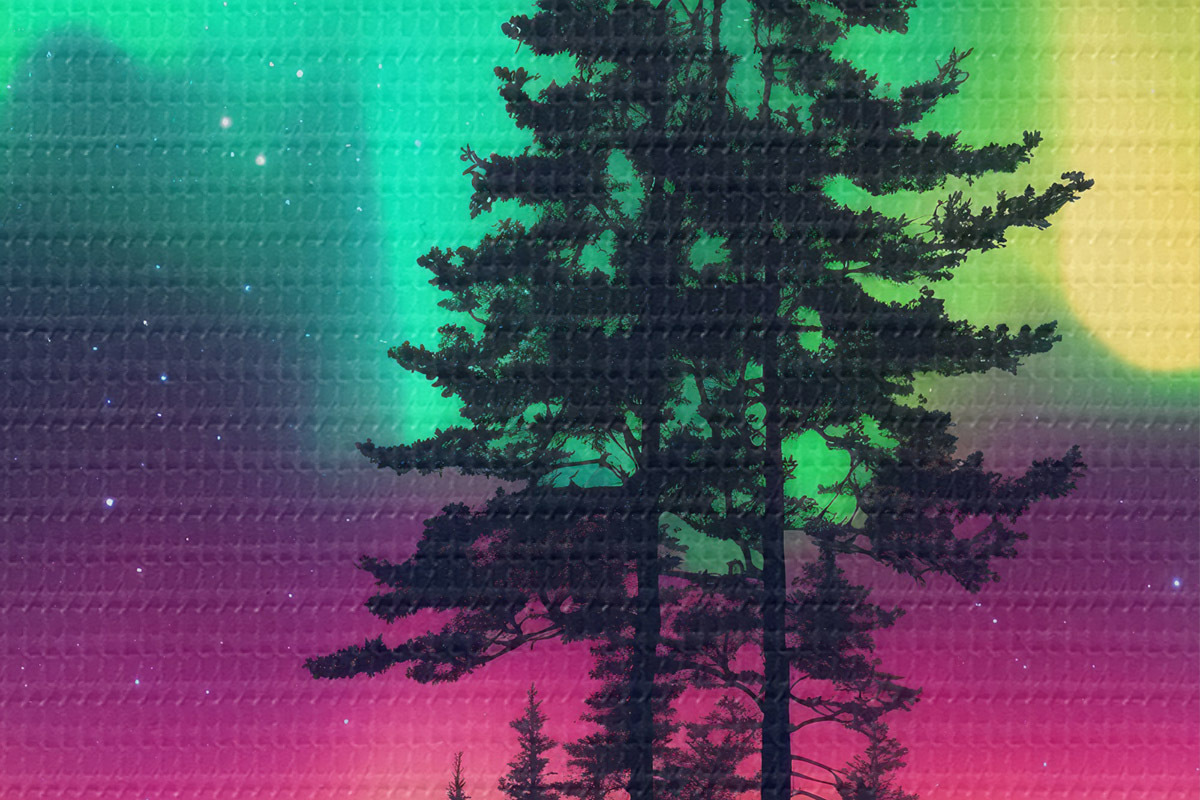 Runde Wandbilder Nordlichter über Weihnachtsbäumen Nr r39366