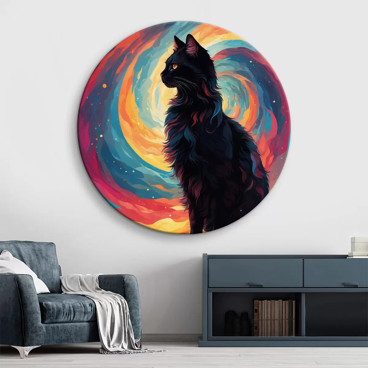 Runde Wandbilder Schwarze Katze auf Weltraumhintergrund Nr r39370