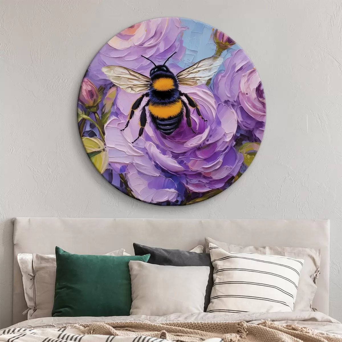 Runde Wandbilder Biene auf den rosa Pfingstrosen, bunte Sommerblumen, Ölgemälde, lebendige Pinselstriche Nr r39411