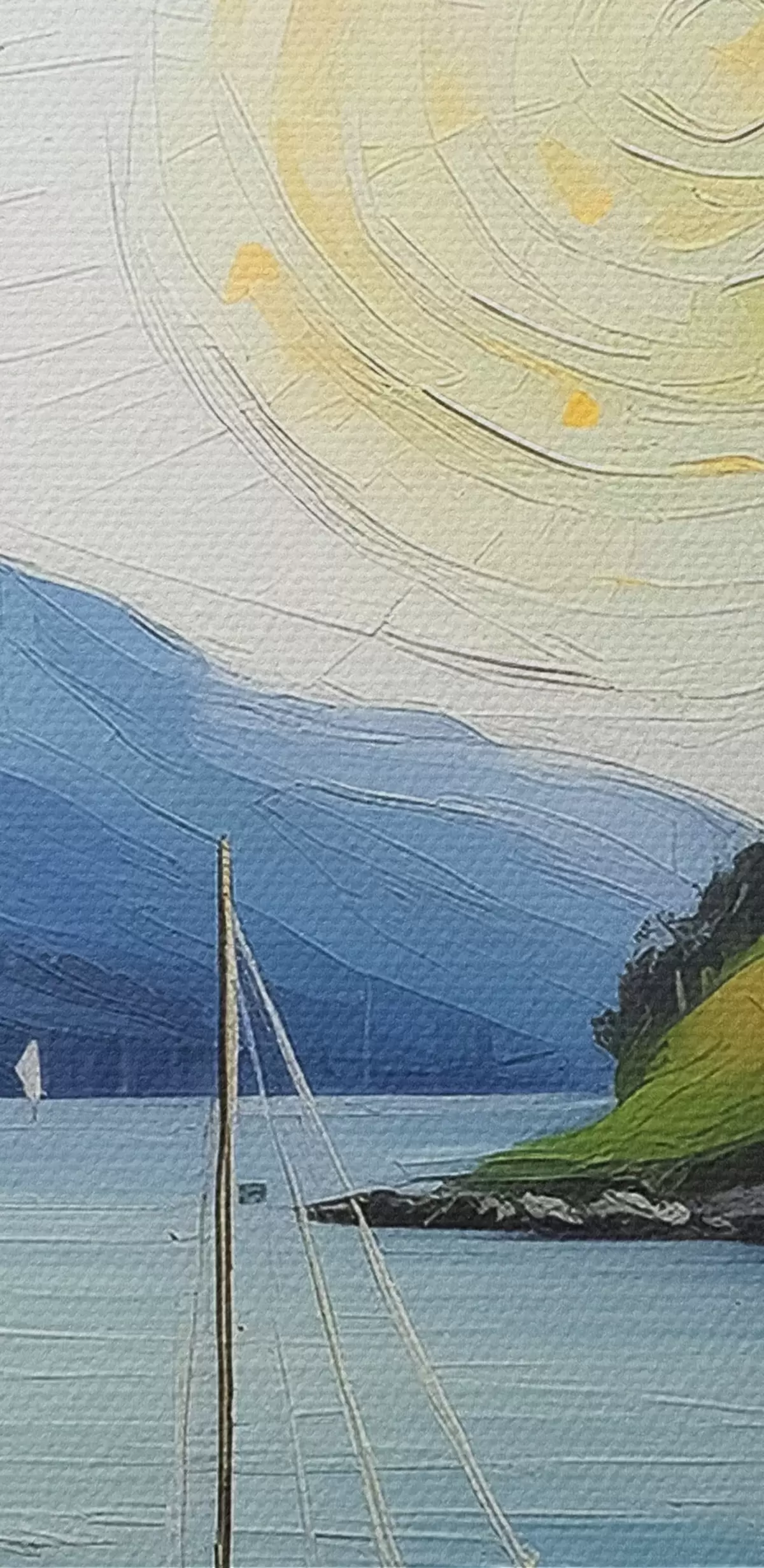 Das Gemälde kann sofort nach Erhalt aufgehängt werden. Das Gemälde wird auf einen 2 cm breiten Holzkeilrahmen aufgespannt.