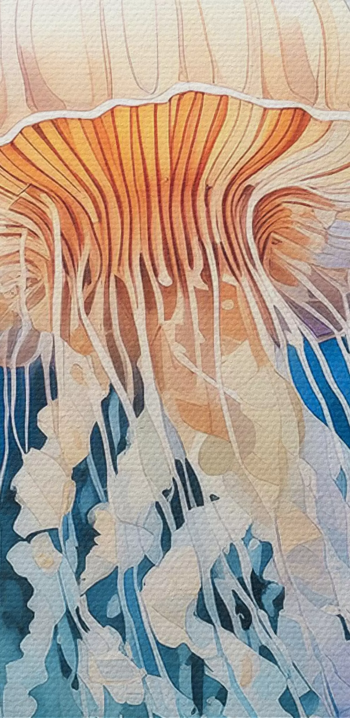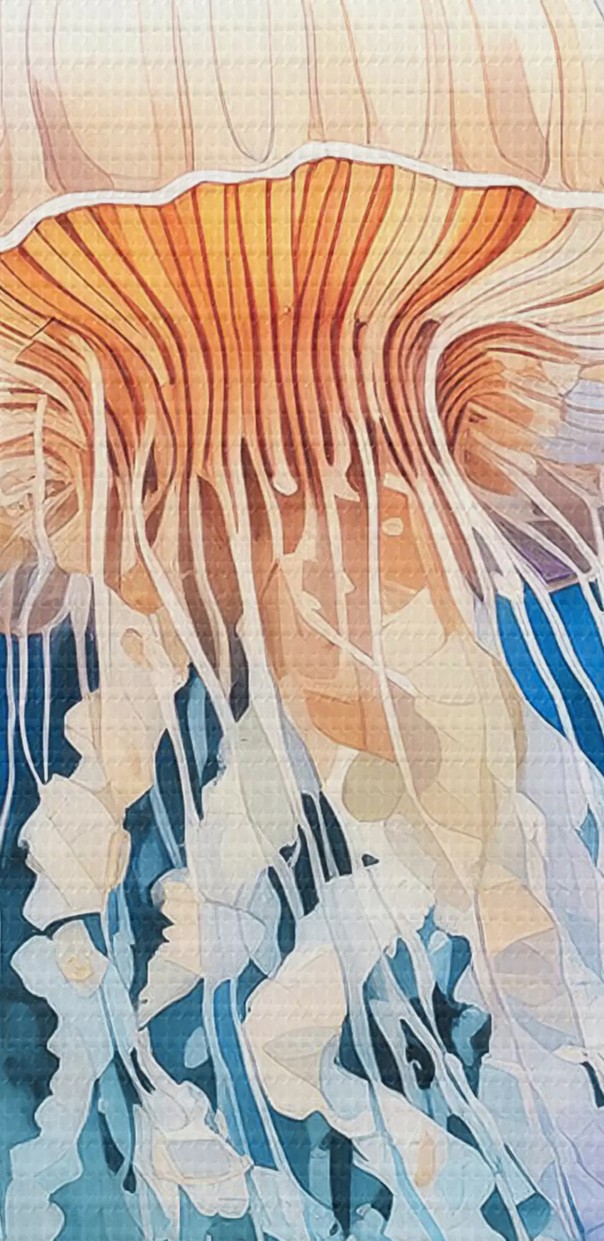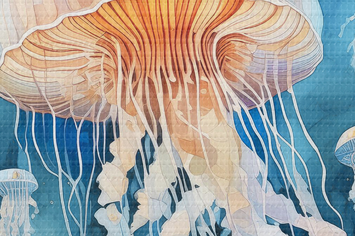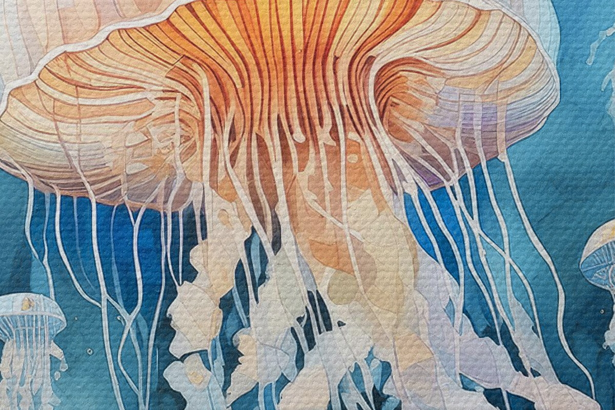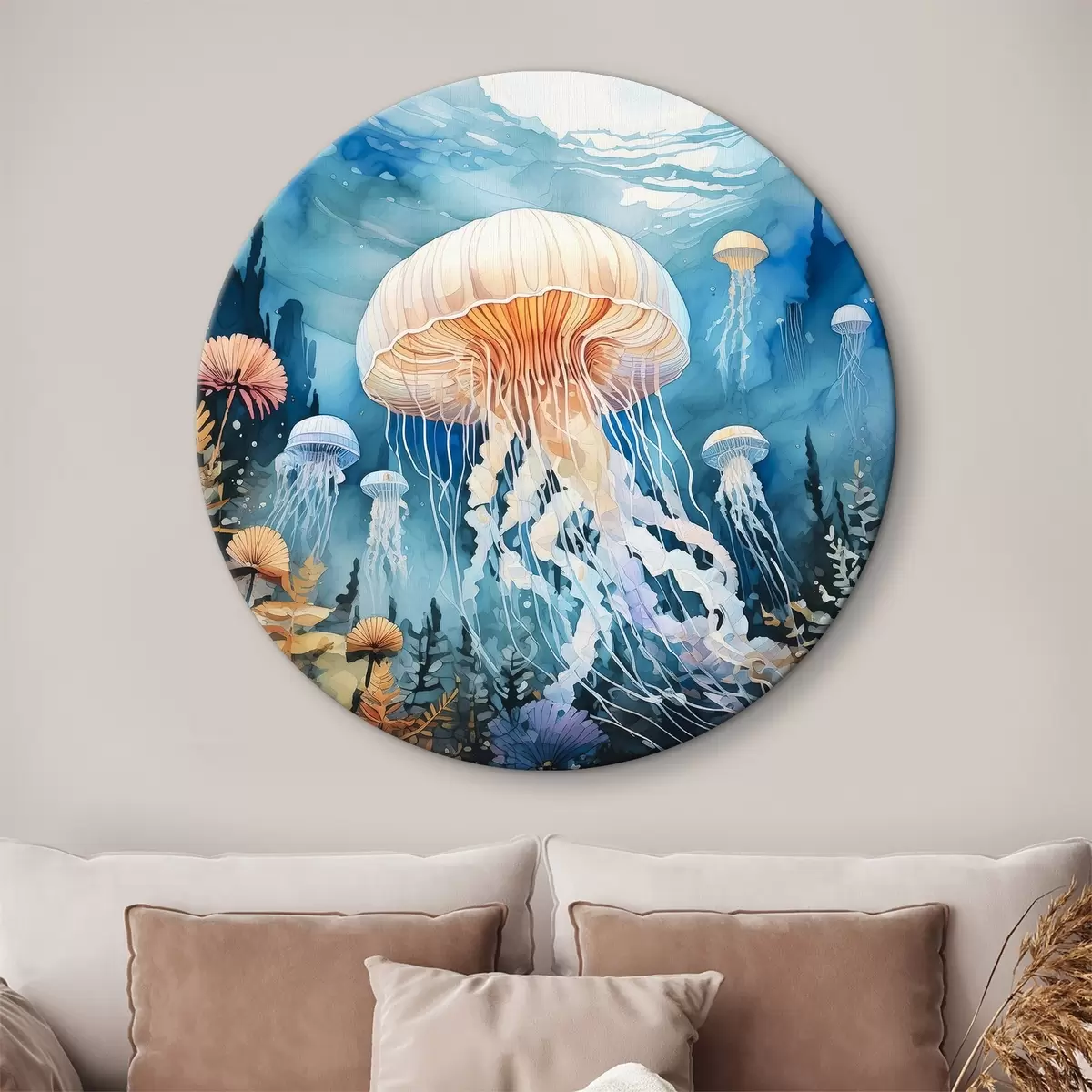Runde Wandbilder Unterwasserleben, Quallen, Aquarell, Korallenriffe, Aquamarinfarben Nr r39428