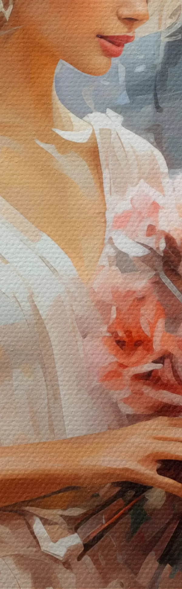 Drei Materialtypen stehen zur Verfügung: Economic Canvas - ein dichtes und haltbares Material für den Digitaldruck, identisch mit Malerleinwand, wasserfeste Oberfläche, realistische Wiedergabe von Details, mittelkörniges Material. Premium Canvas - die Textur ähnelt der einer Malerleinwand (verwobene kleine Fäden). Weiche, detaillierte Wiedergabe des Bildes auf einer matten Oberfläche. Eco-Premium - hochwertiges Gewebe aus 100% Baumwolle. Dank der natürlichen Baumwollfasern ist das Material langlebig und verschleißfest. Hervorragende Farbwiedergabe und Detailtreue.