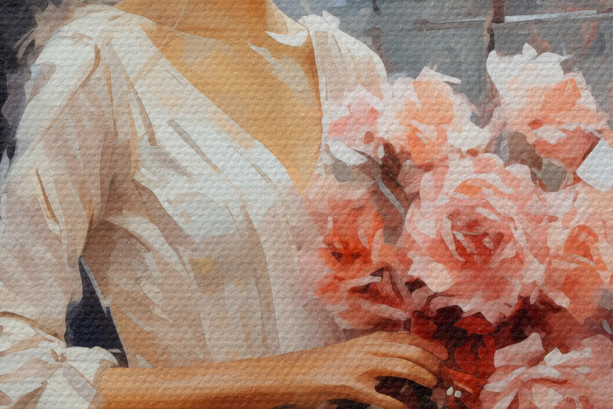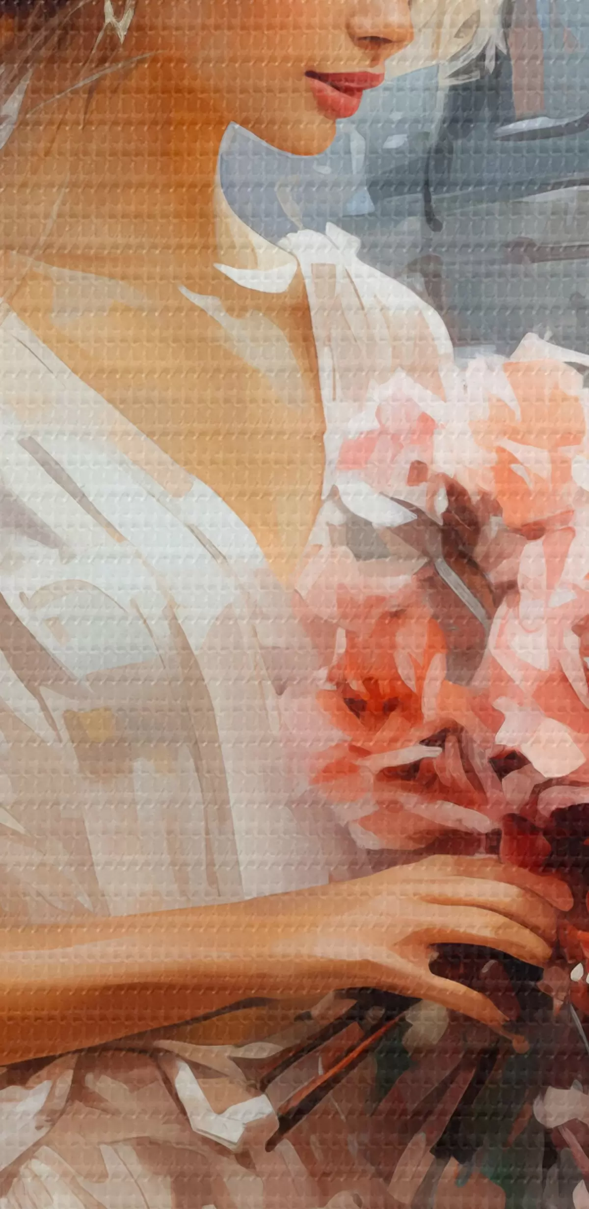 Drei Materialtypen stehen zur Verfügung: Economic Canvas - ein dichtes und haltbares Material für den Digitaldruck, identisch mit Malerleinwand, wasserfeste Oberfläche, realistische Wiedergabe von Details, mittelkörniges Material. Premium Canvas - die Textur ähnelt der einer Malerleinwand (verwobene kleine Fäden). Weiche, detaillierte Wiedergabe des Bildes auf einer matten Oberfläche. Eco-Premium - hochwertiges Gewebe aus 100% Baumwolle. Dank der natürlichen Baumwollfasern ist das Material langlebig und verschleißfest. Hervorragende Farbwiedergabe und Detailtreue.