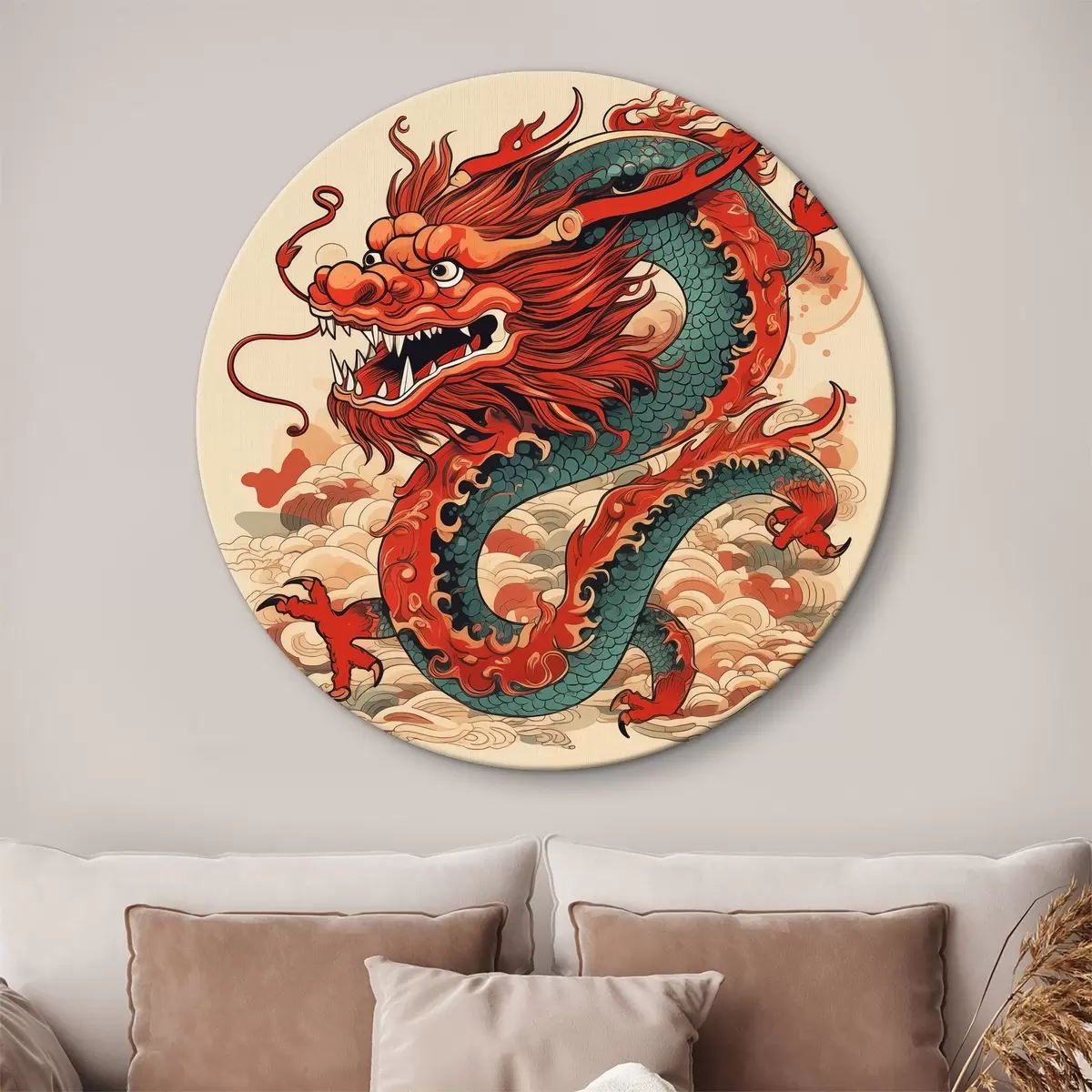 Runde Wandbilder Roter Drache im chinesischen Stil, orientalisch Nr r39439
