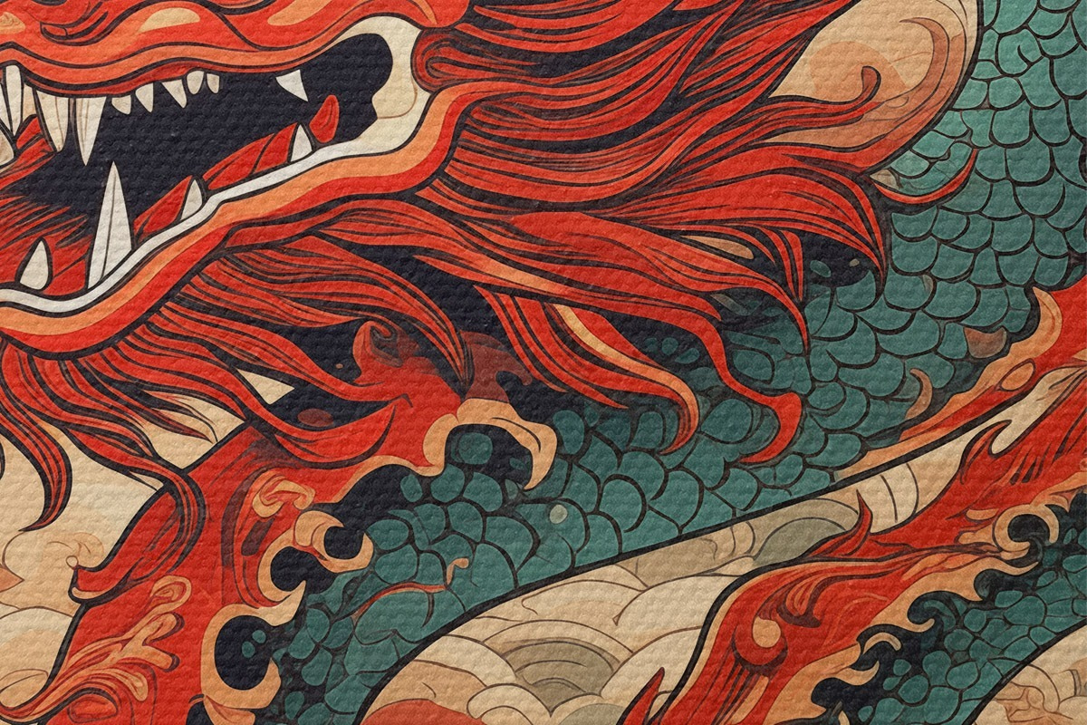 Runde Wandbilder Roter Drache im chinesischen Stil, orientalisch r39439