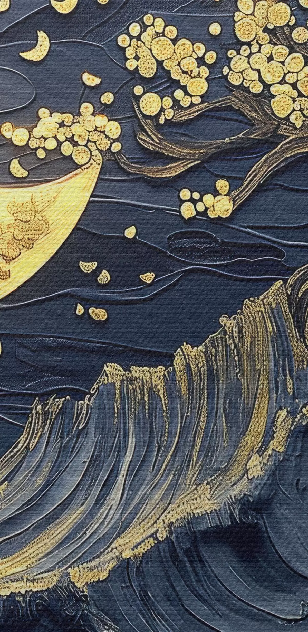 Das Gemälde kann sofort nach Erhalt aufgehängt werden. Das Gemälde wird auf einen 2 cm breiten Holzkeilrahmen aufgespannt.
