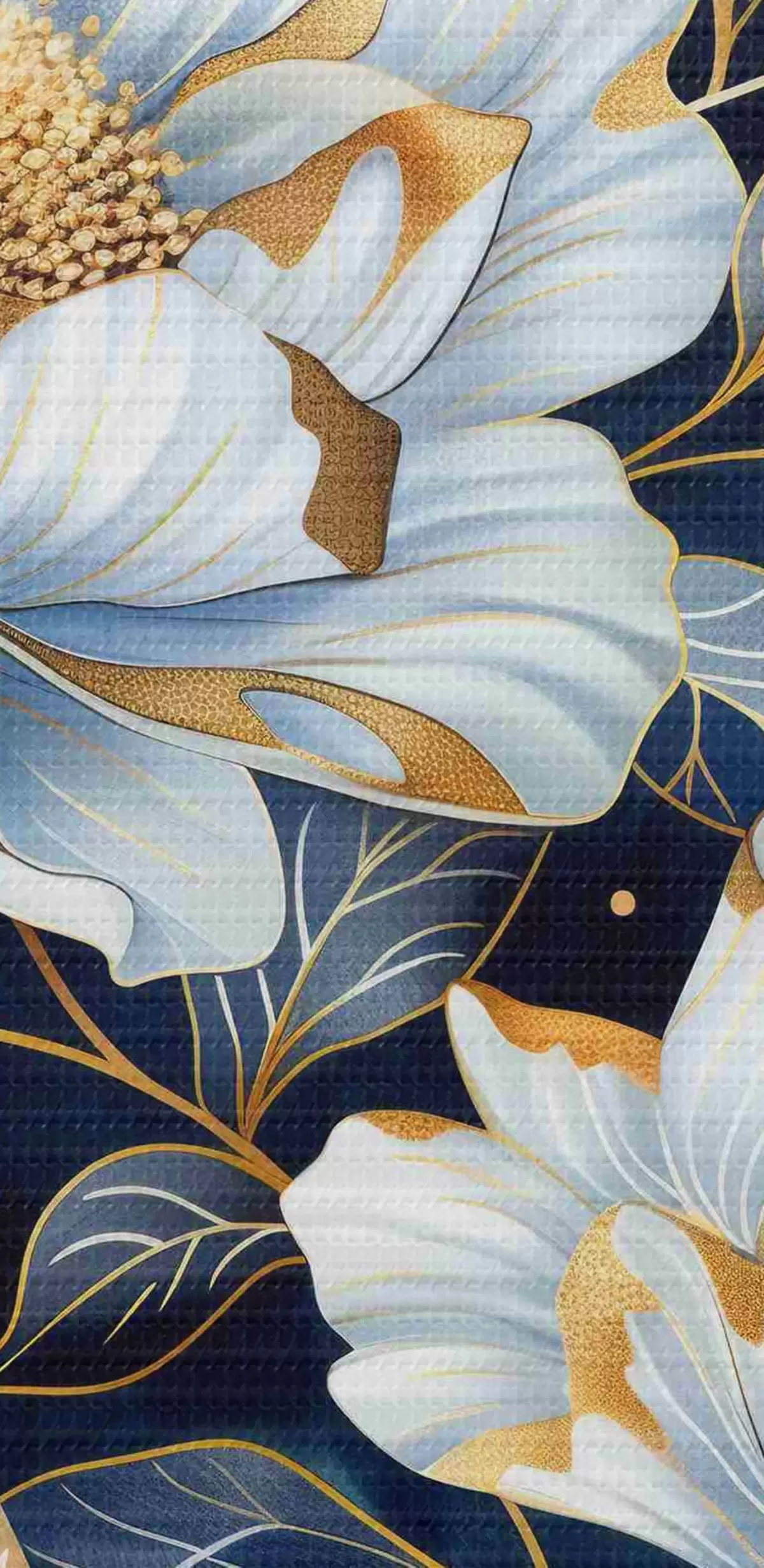 Runde Wandbilder Weiße Pfingstrosen und Rosen mit Umriss, blauen Blättern und floralen Mustern im Hintergrund r39457