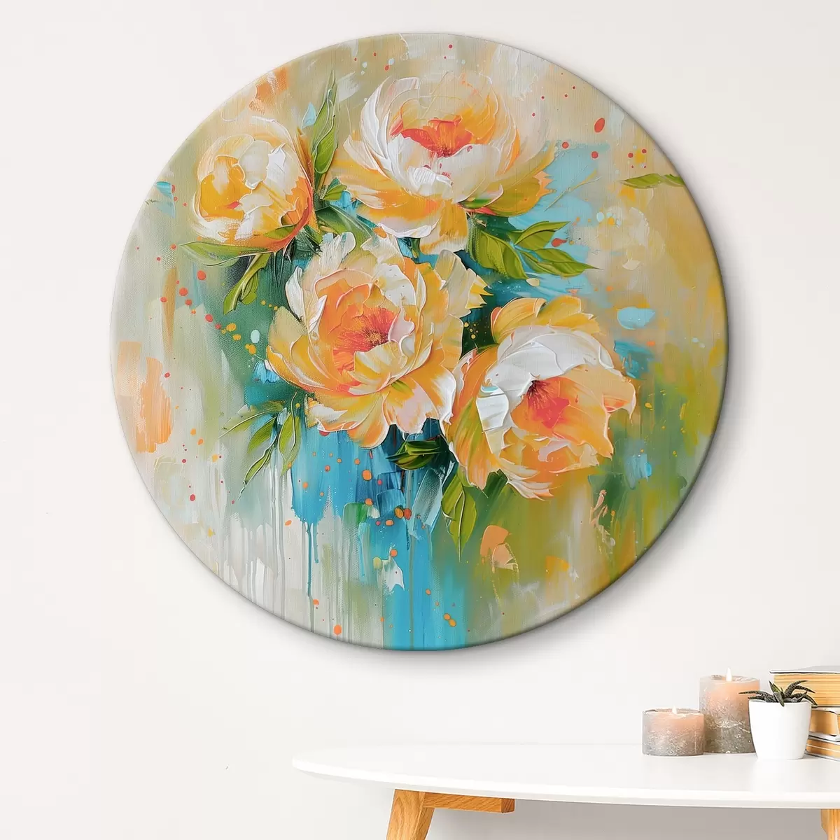 Runde Wandbilder Zarte und zarte Blüten in einem lebendigen abstrakten Gemälde r39461