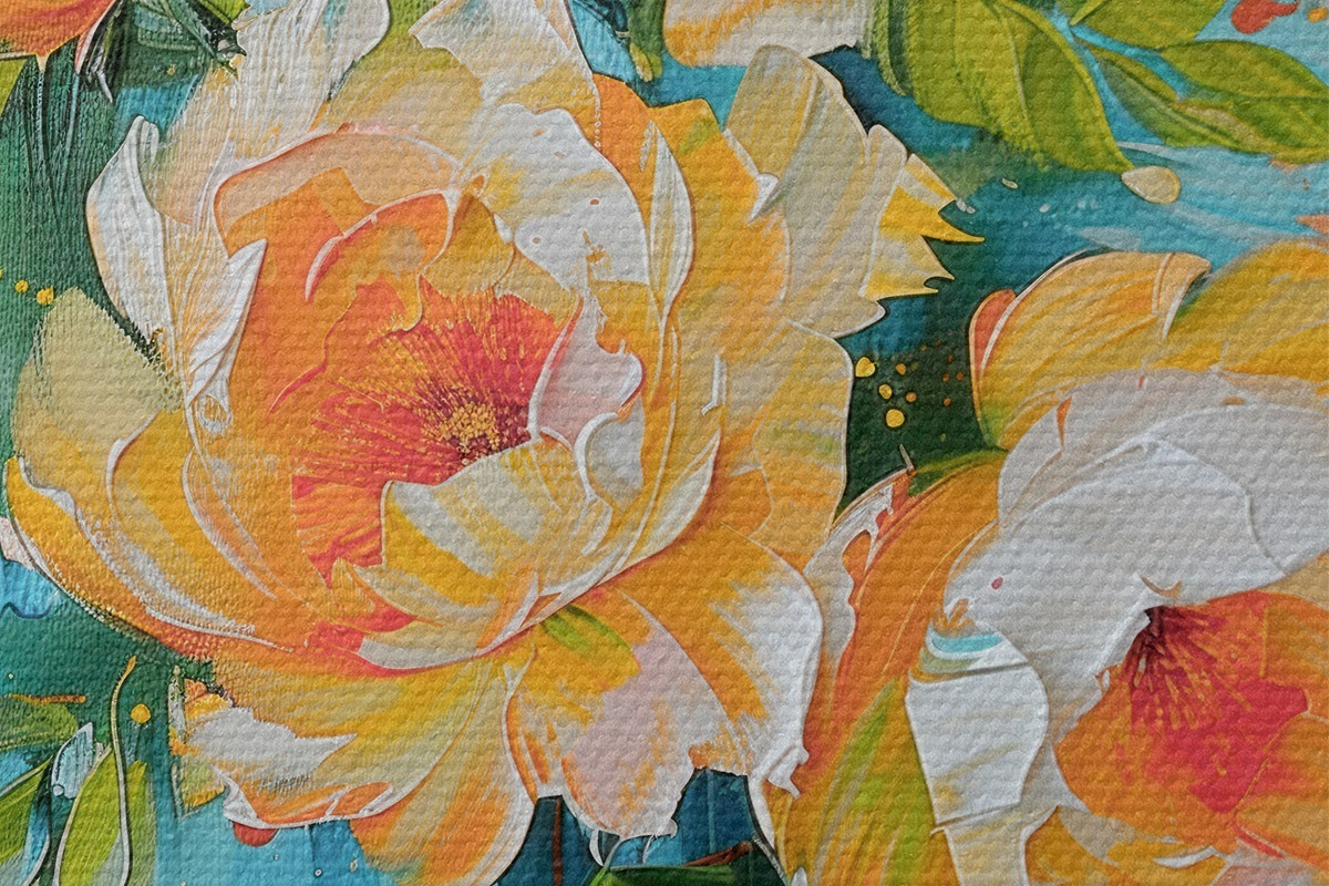 Drei Materialtypen stehen zur Verfügung: Economic Canvas - ein dichtes und haltbares Material für den Digitaldruck, identisch mit Malerleinwand, wasserfeste Oberfläche, realistische Wiedergabe von Details, mittelkörniges Material. Premium Canvas - die Textur ähnelt der einer Malerleinwand (verwobene kleine Fäden). Weiche, detaillierte Wiedergabe des Bildes auf einer matten Oberfläche. Eco-Premium - hochwertiges Gewebe aus 100% Baumwolle. Dank der natürlichen Baumwollfasern ist das Material langlebig und verschleißfest. Hervorragende Farbwiedergabe und Detailtreue.