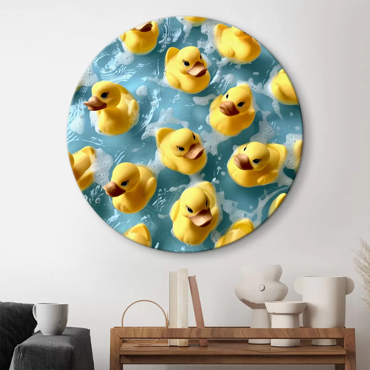 Runde Wandbilder Realistische Gummienten, die im Wasser schwimmen Nr r39469