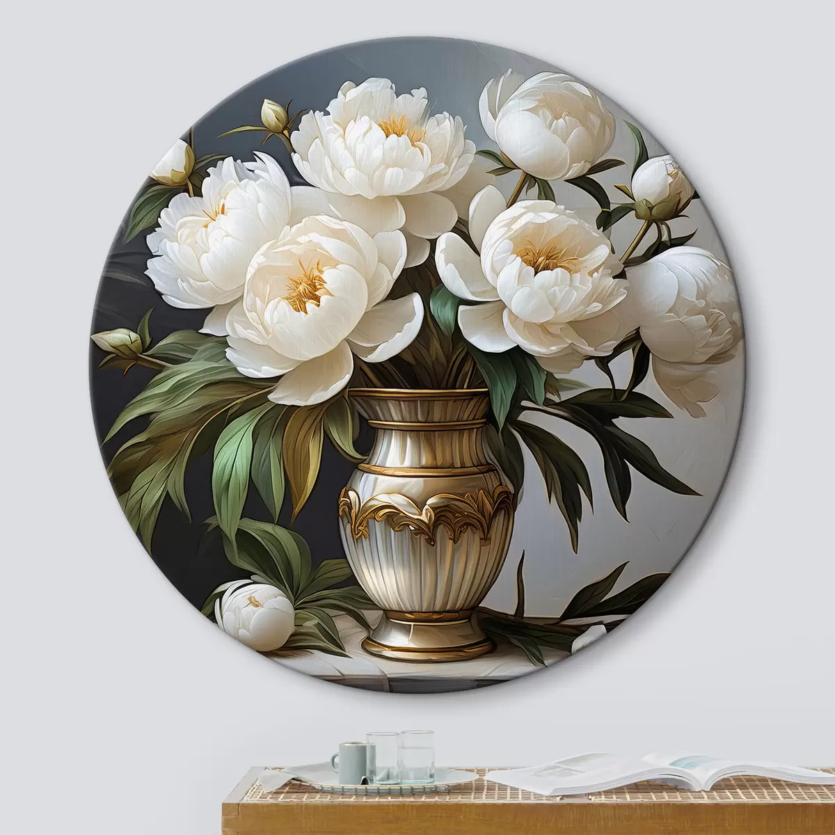 Runde Wandbilder Ein Strauß weißer Pfingstrosen Nr r39475