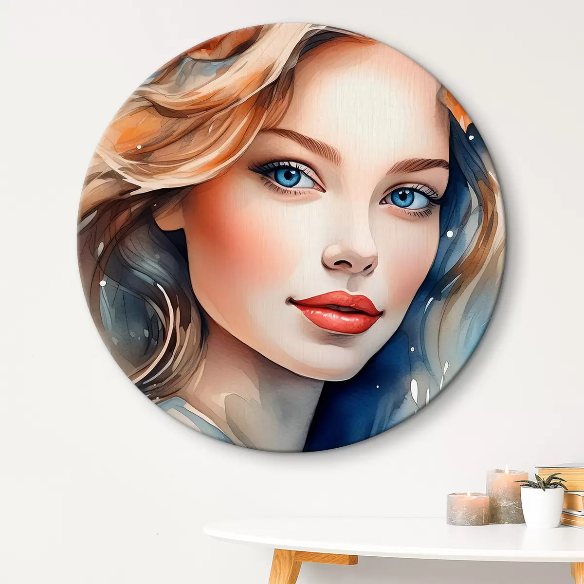 Runde Wandbilder Porträt eines schönen Mädchens in Aquarell Nr r39478