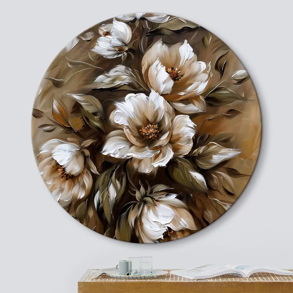 Runde Wandbilder Blumen mit Blättern in Brauntönen r39487