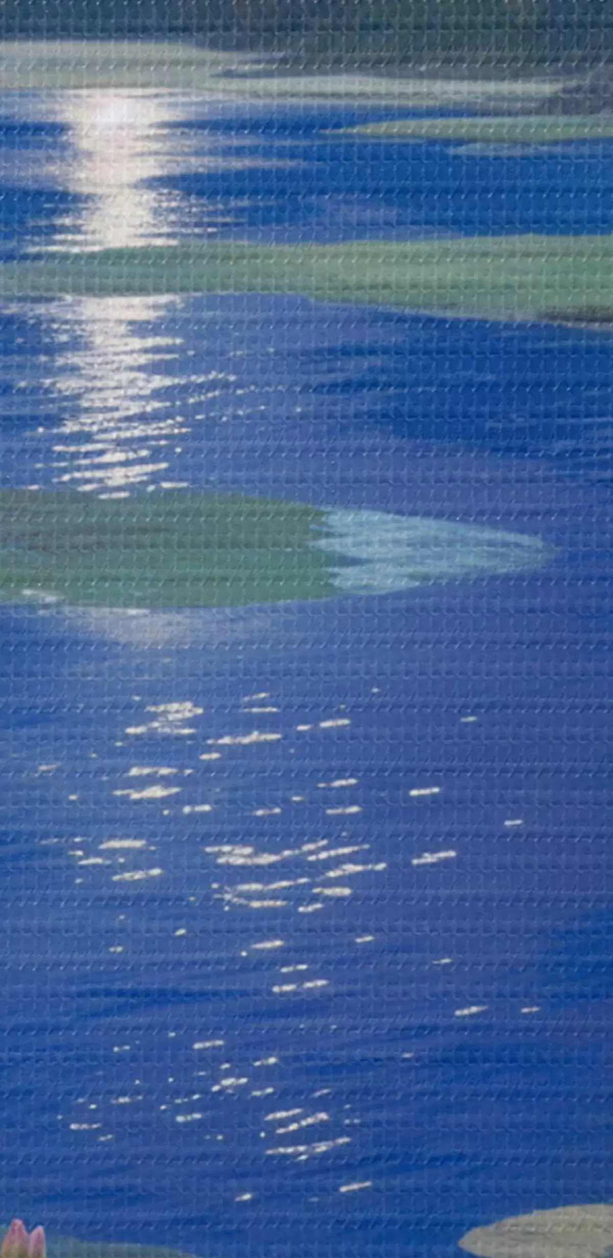 Runde Wandbilder See bei Nacht mit Vollmond, der sich im Wasser spiegelt, mit grünen Bäumen und Seerosen r39526