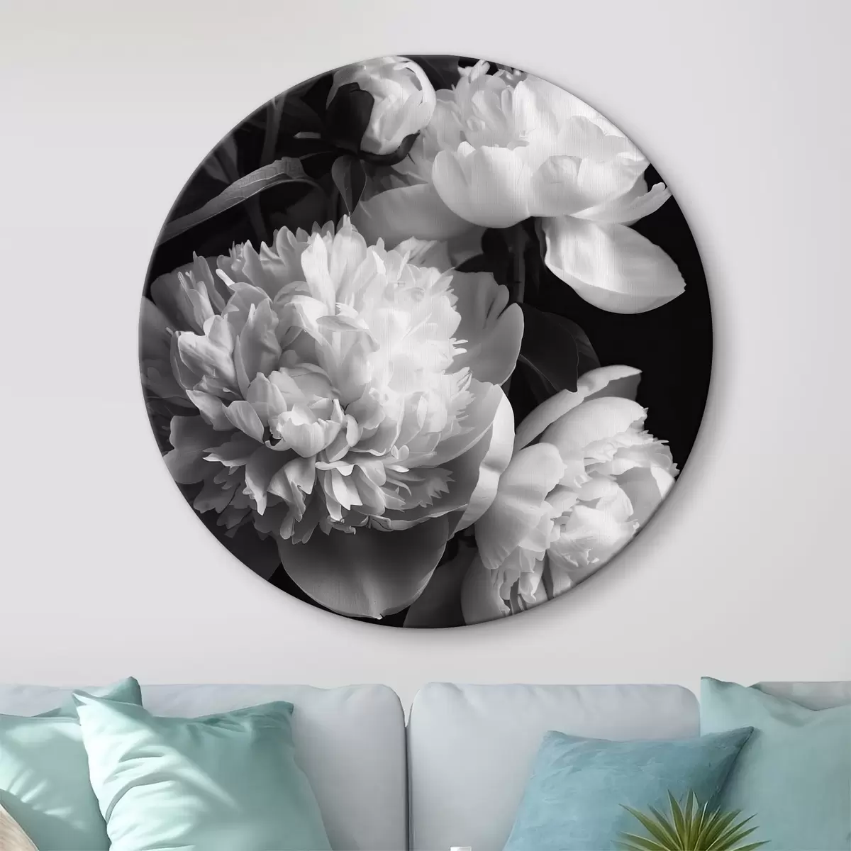Runde Wandbilder Schwarze und weiße Pfingstrosen r39547