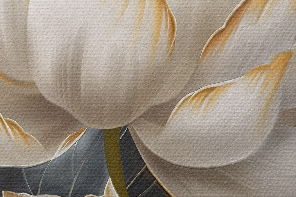 Drei Materialtypen stehen zur Verfügung: Economic Canvas - ein dichtes und haltbares Material für den Digitaldruck, identisch mit Malerleinwand, wasserfeste Oberfläche, realistische Wiedergabe von Details, mittelkörniges Material. Premium Canvas - die Textur ähnelt der einer Malerleinwand (verwobene kleine Fäden). Weiche, detaillierte Wiedergabe des Bildes auf einer matten Oberfläche. Eco-Premium - hochwertiges Gewebe aus 100% Baumwolle. Dank der natürlichen Baumwollfasern ist das Material langlebig und verschleißfest. Hervorragende Farbwiedergabe und Detailtreue.