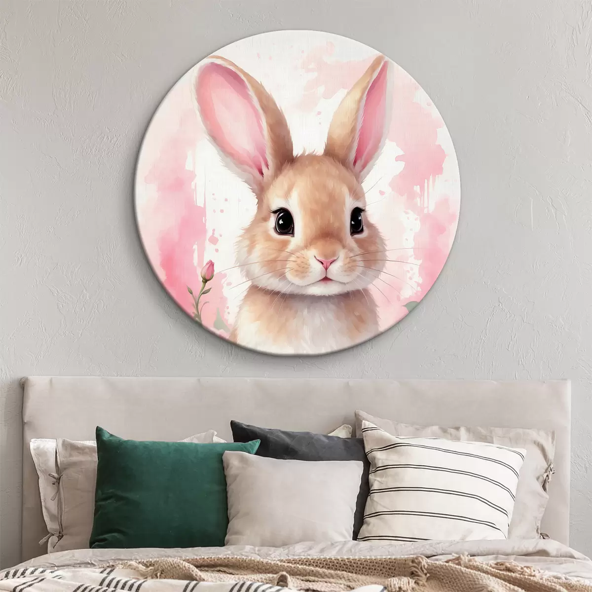 Runde Wandbilder Niedlicher Hase in rosa Blumen Nr r39559