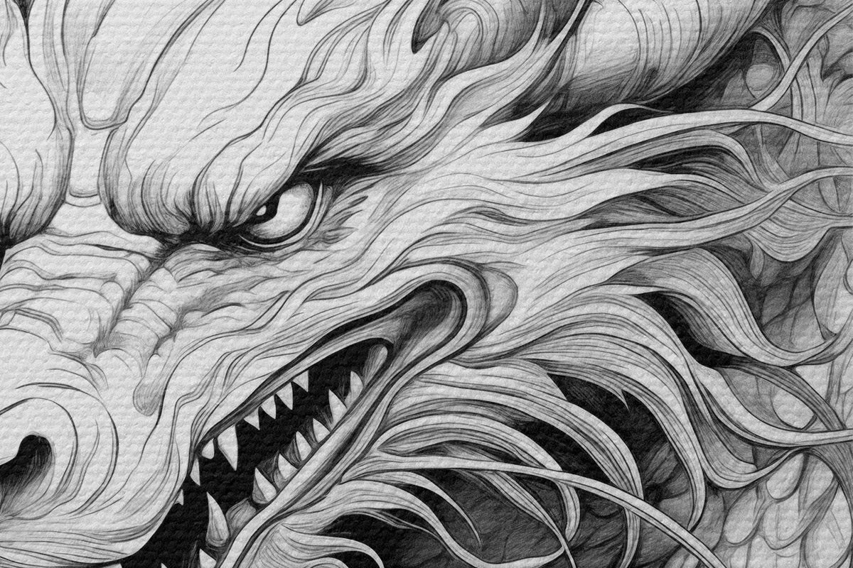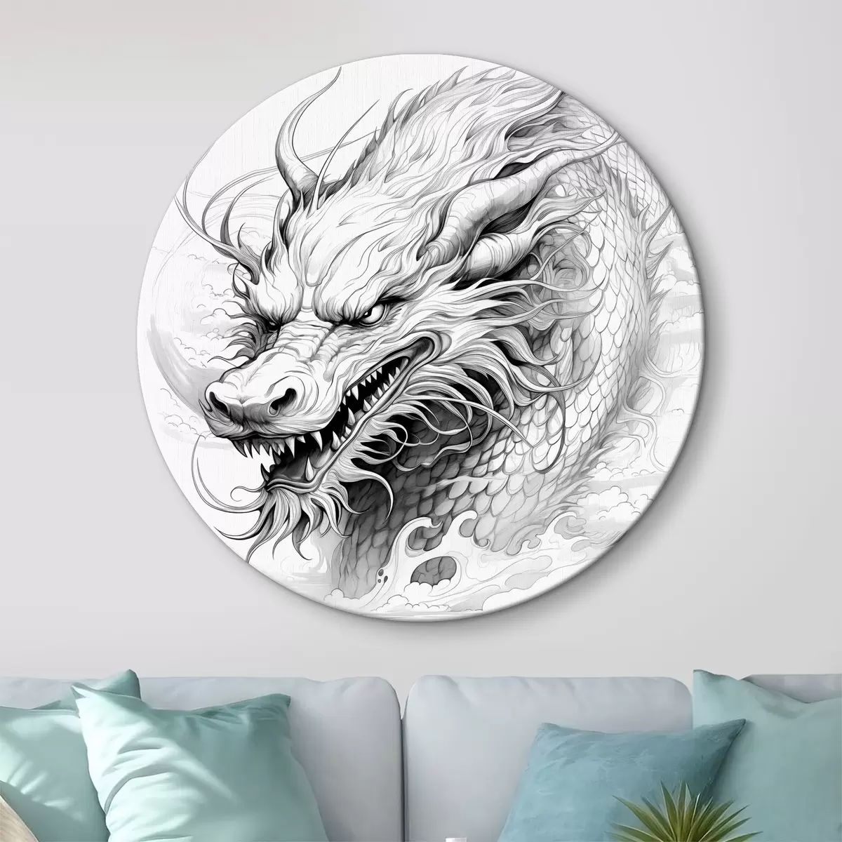 Runde Wandbilder Monochrome Strichzeichnung eines Drachens im chinesischen Stil Nr r39563
