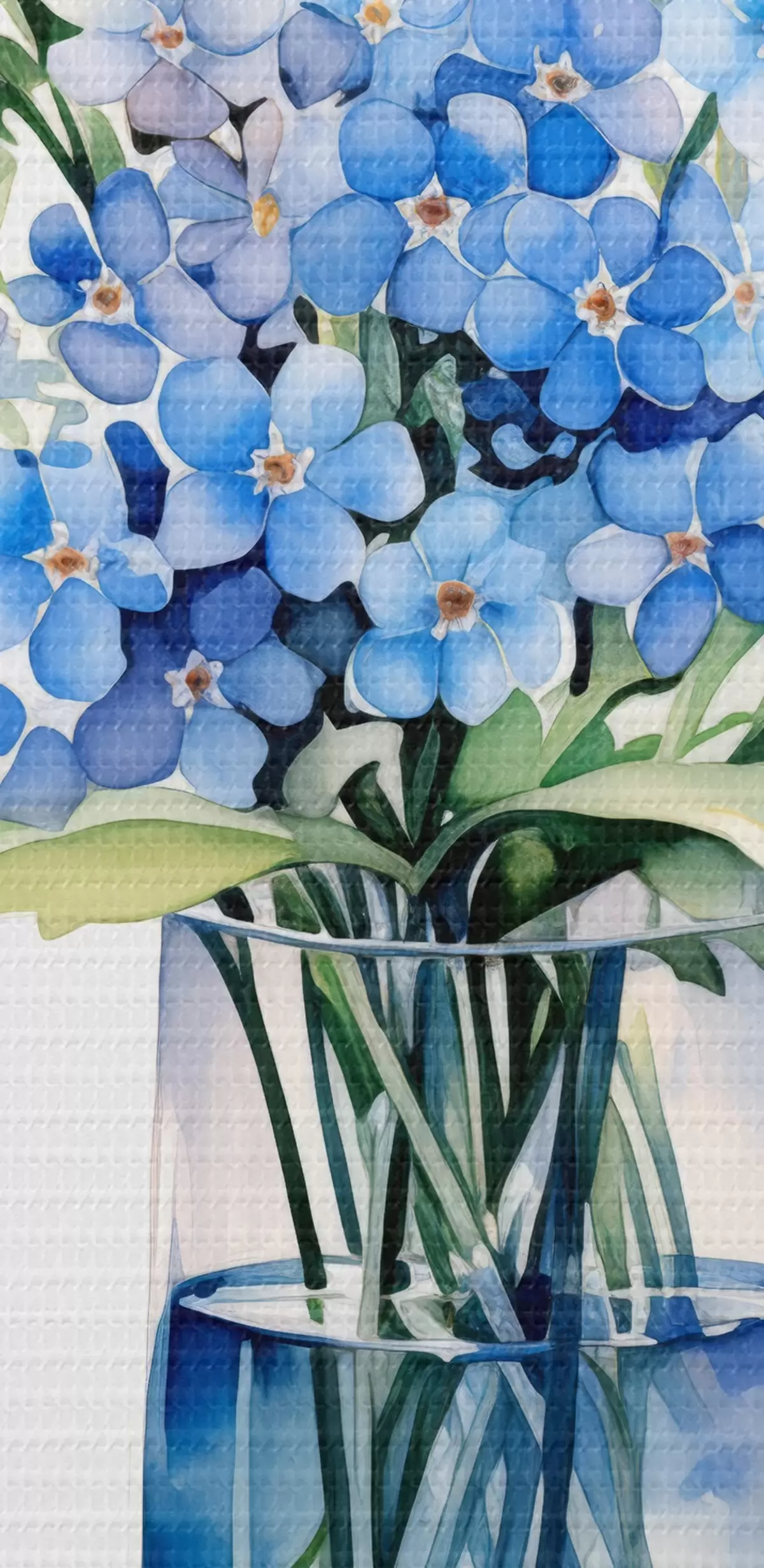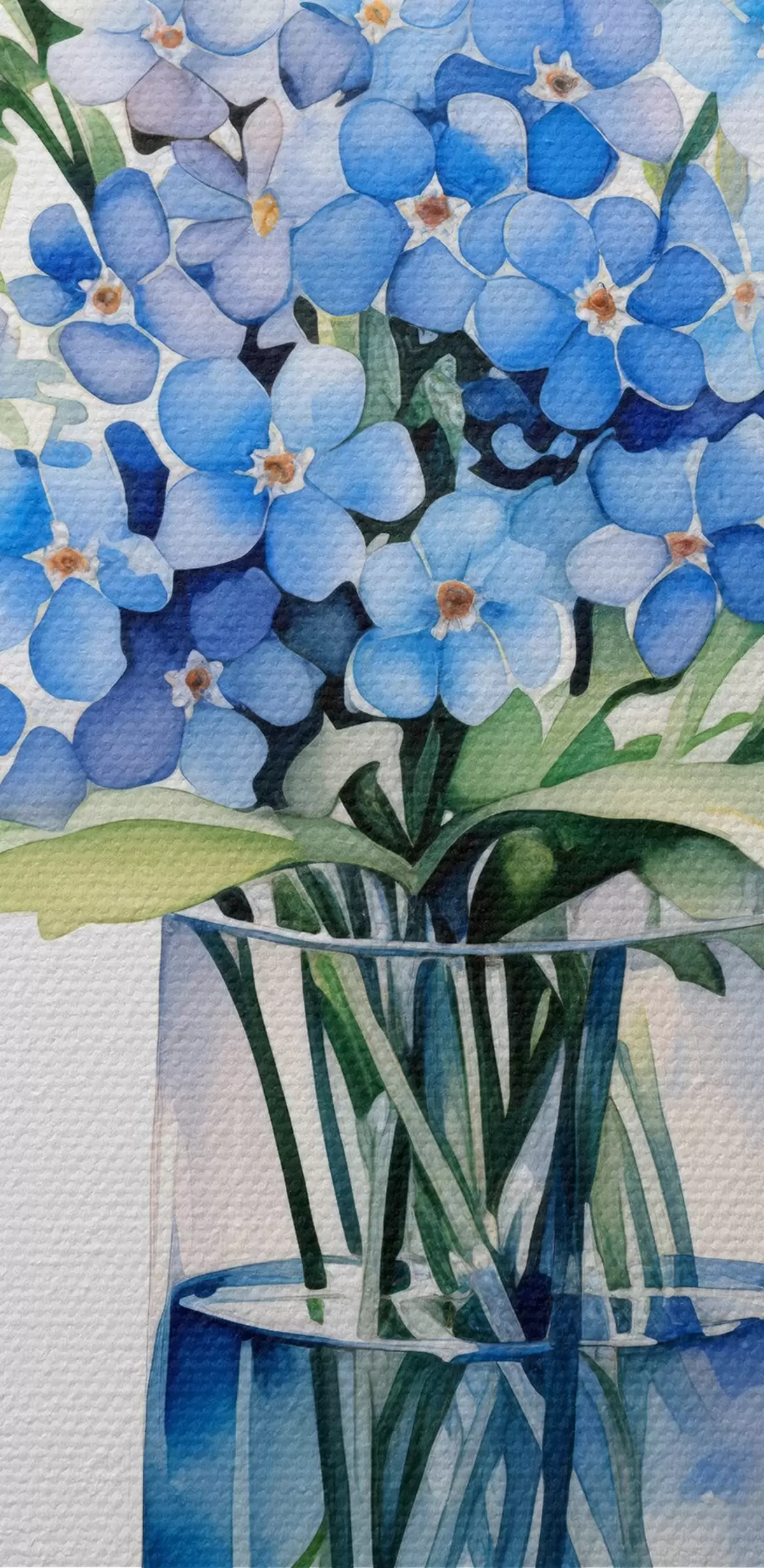 Runde Wandbilder Blumenstrauß aus blauen Wildblumen in einer transparenten Vase Aquarell Nr r39564