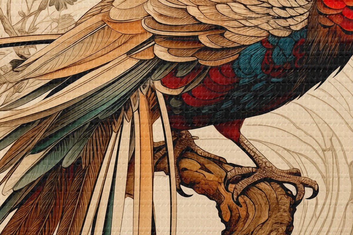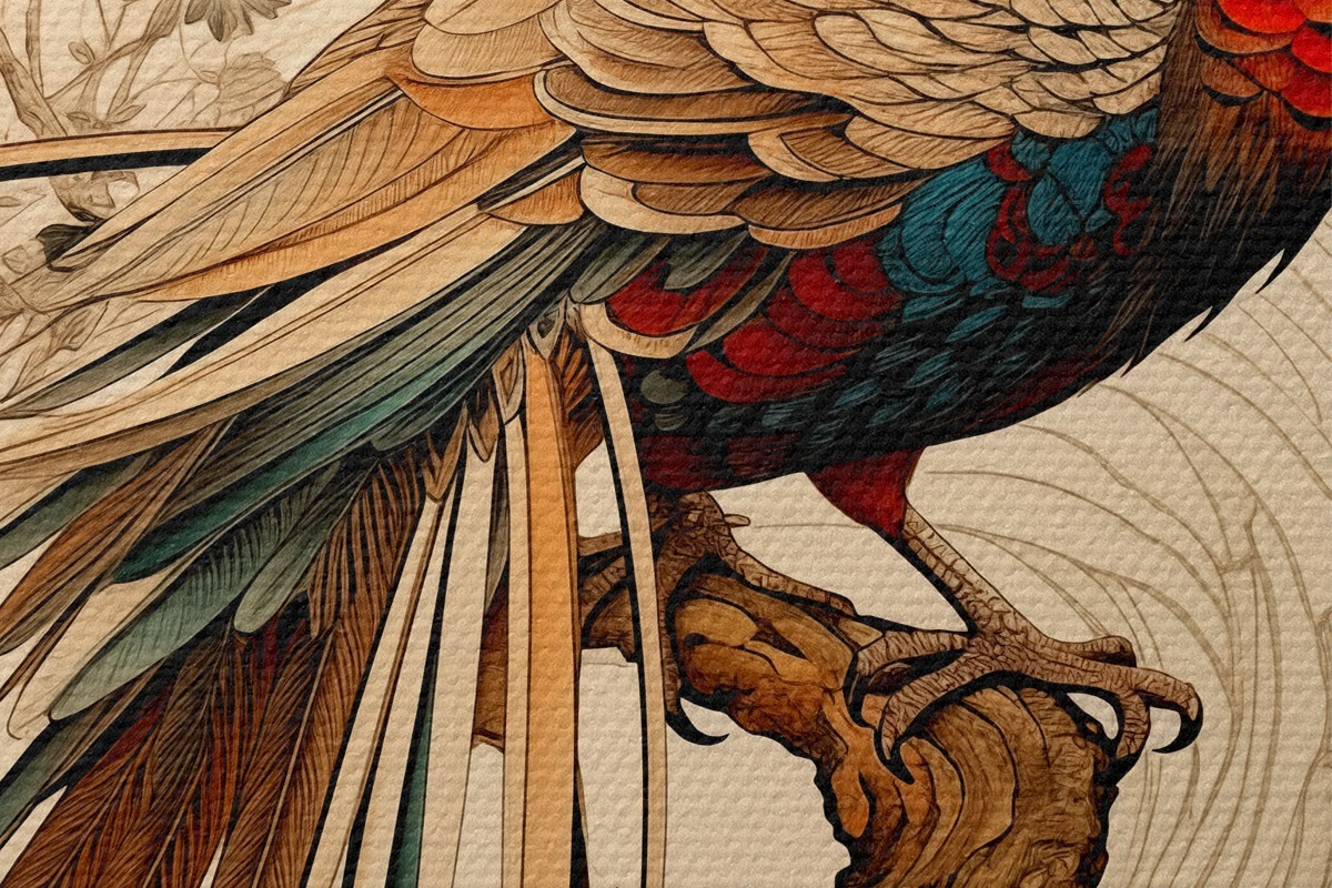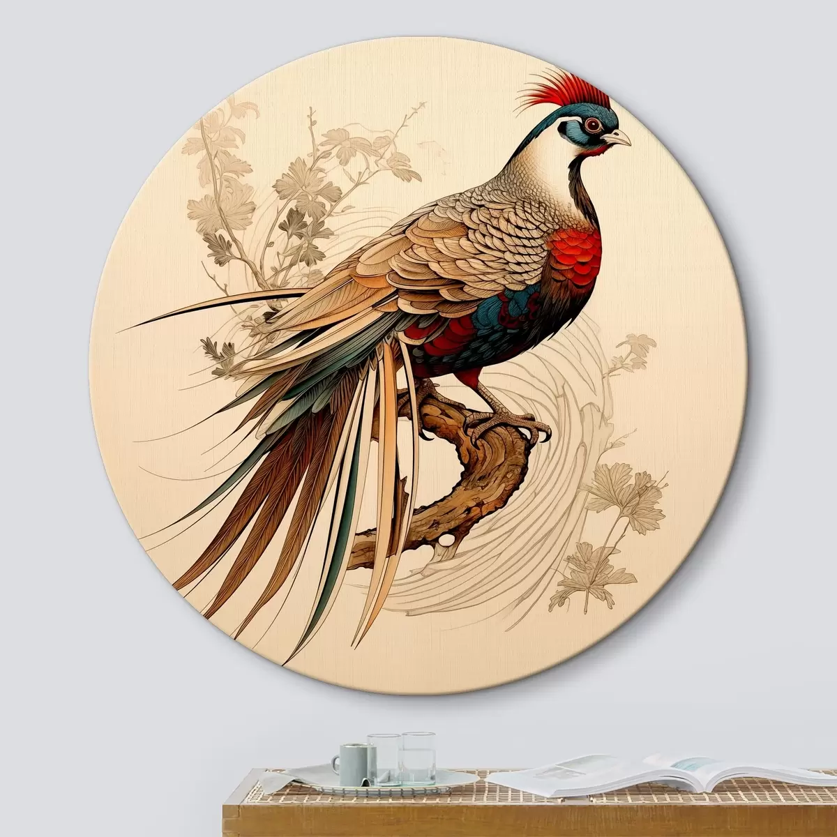 Runde Wandbilder Fasan sitzend auf einem Baum Zeichnung im orientalischen Stil Nr r39566