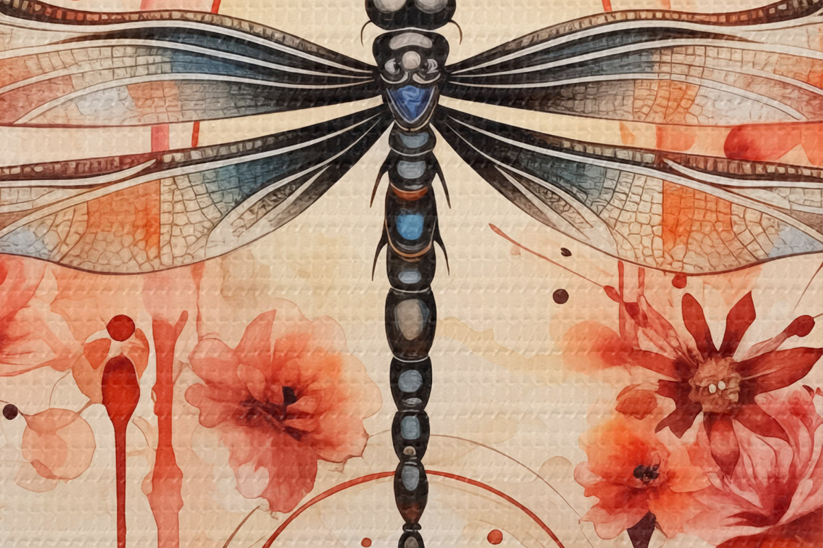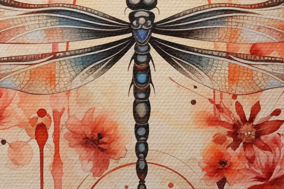 Runde Wandbilder Libelle zwischen roten Blumen Aquarell r39567