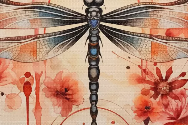 Runde Wandbilder Libelle zwischen roten Blumen Aquarell Nr r39567