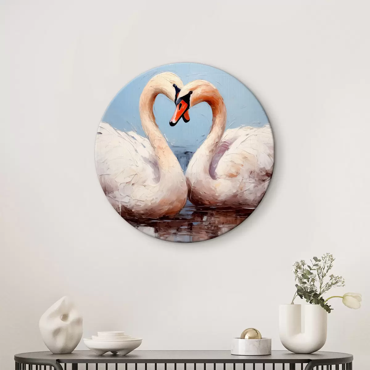 Runde Wandbilder Paar weiße Schwäne auf einem Teich, Ölgemälde Nr r39572