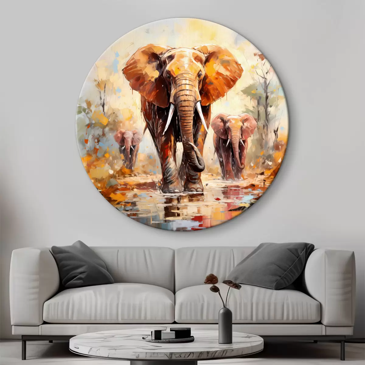 Runde Wandbilder Eine Herde Elefanten in der Savanne, Ölgemälde, abstrakte Kunst Nr r39573