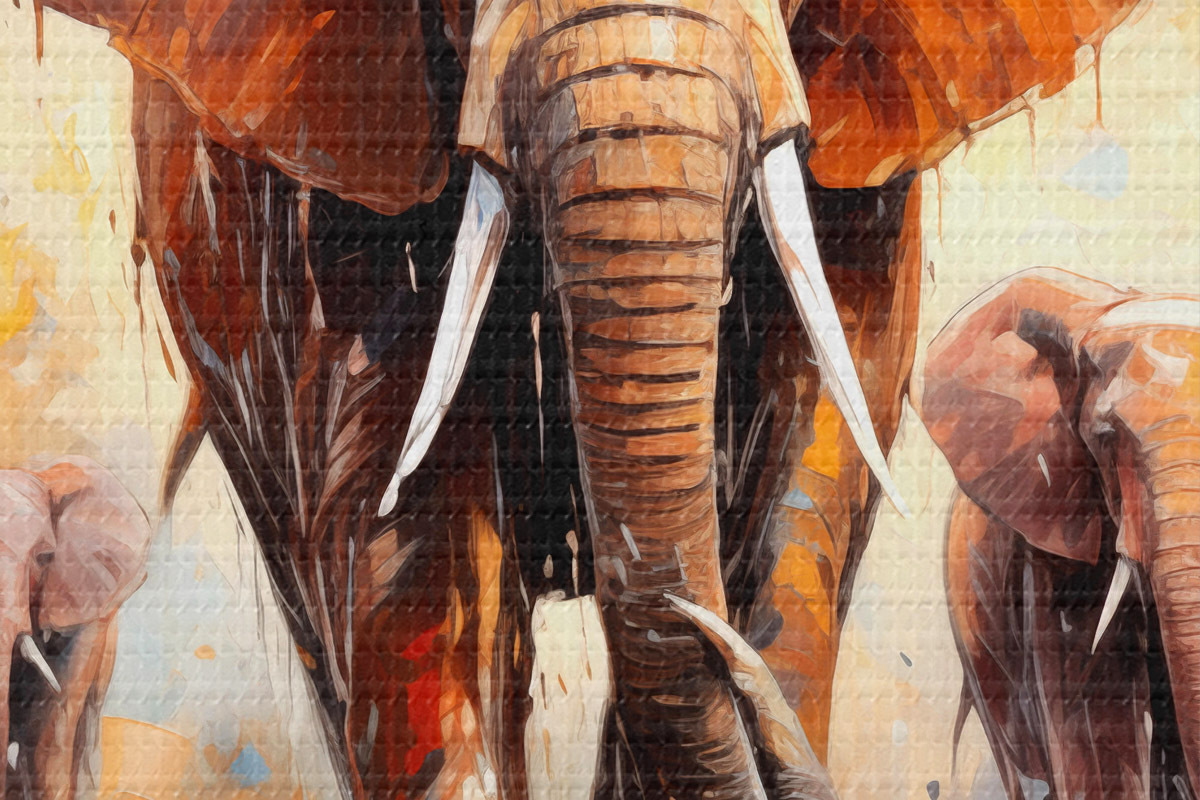 Runde Wandbilder Eine Herde Elefanten in der Savanne, Ölgemälde, abstrakte Kunst r39573