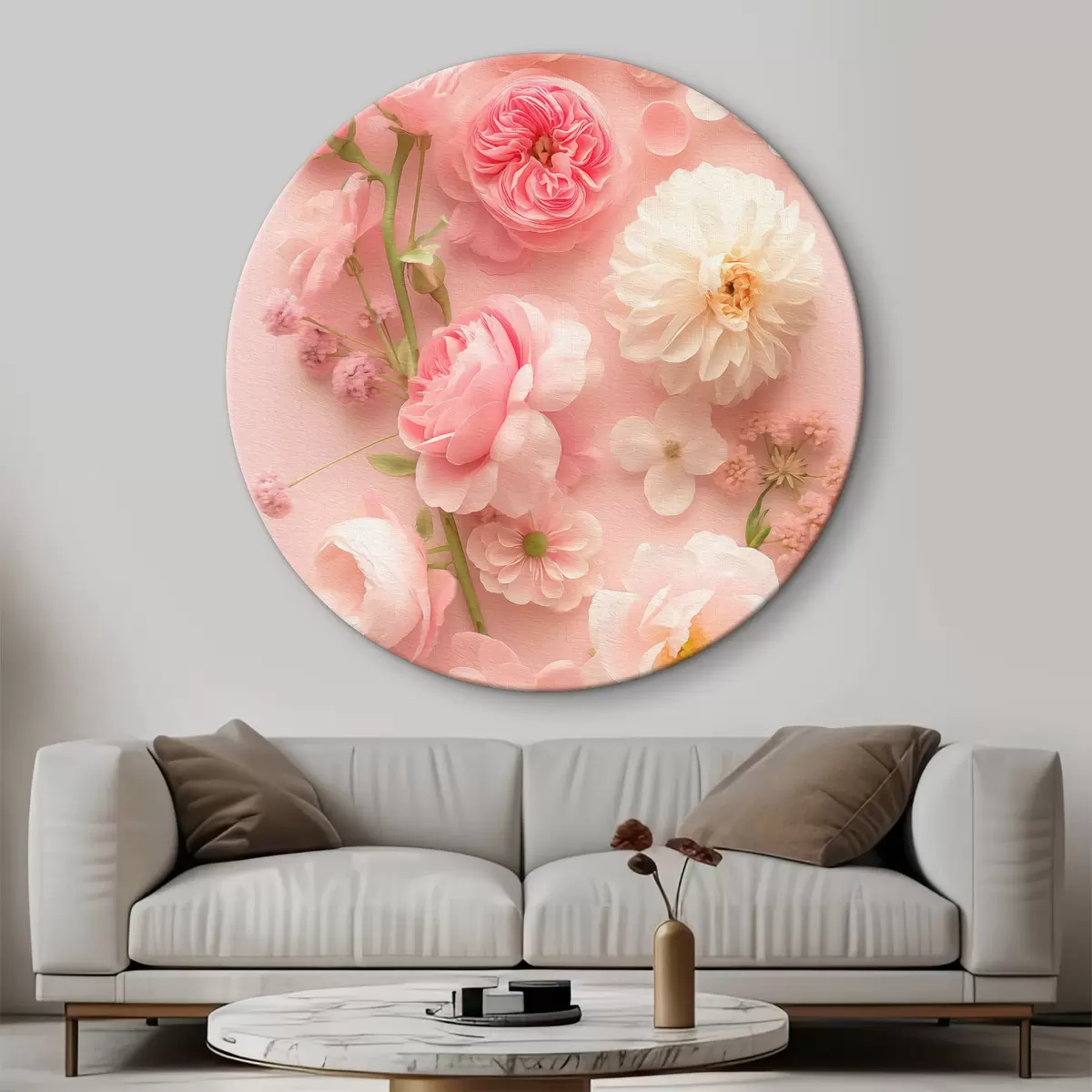 Runde Wandbilder Üppige Blumen auf rosa Hintergrund r39576
