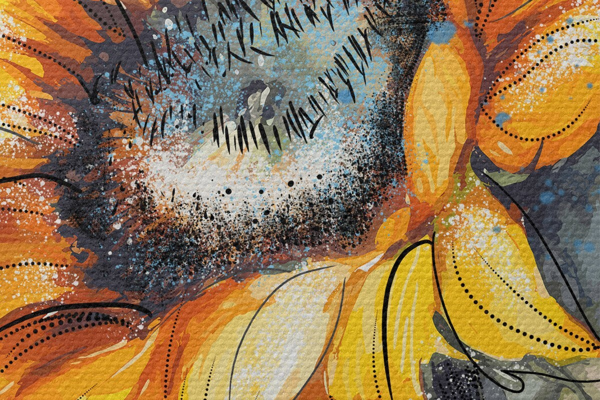 Runde Wandbilder Aquarellierte Sonnenblume mit Farbspritzern Nr r39583