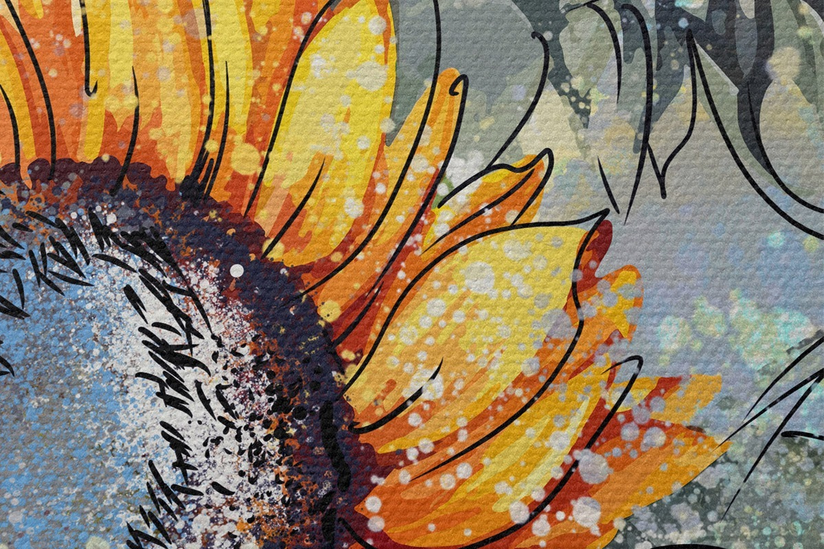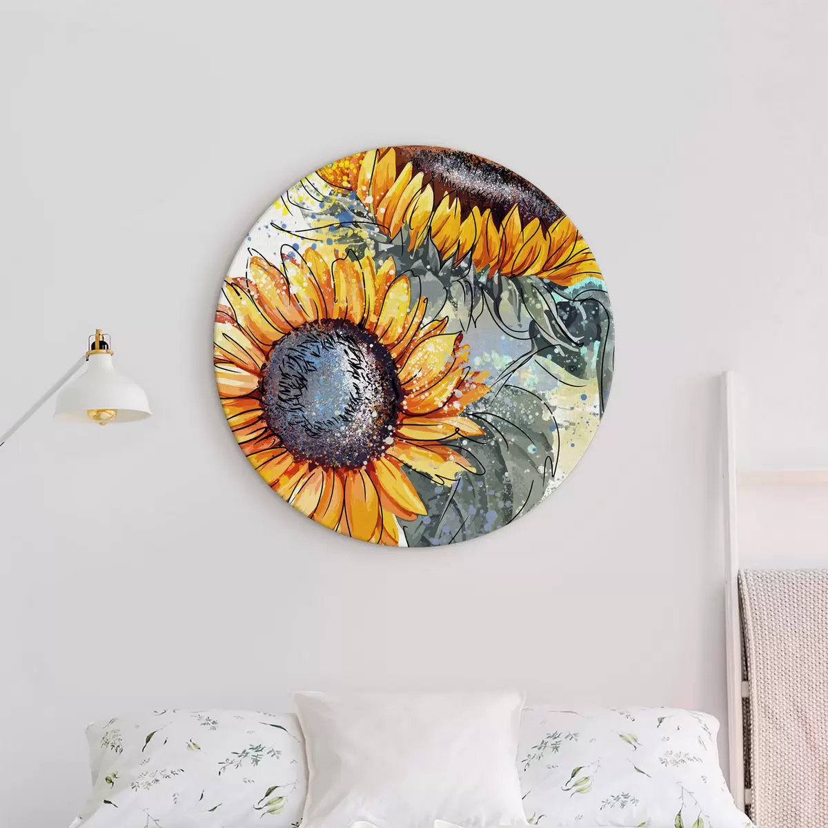 Runde Wandbilder Helle Sonnenblumen, Aquarelleffekt mit Farbspritzern r39585