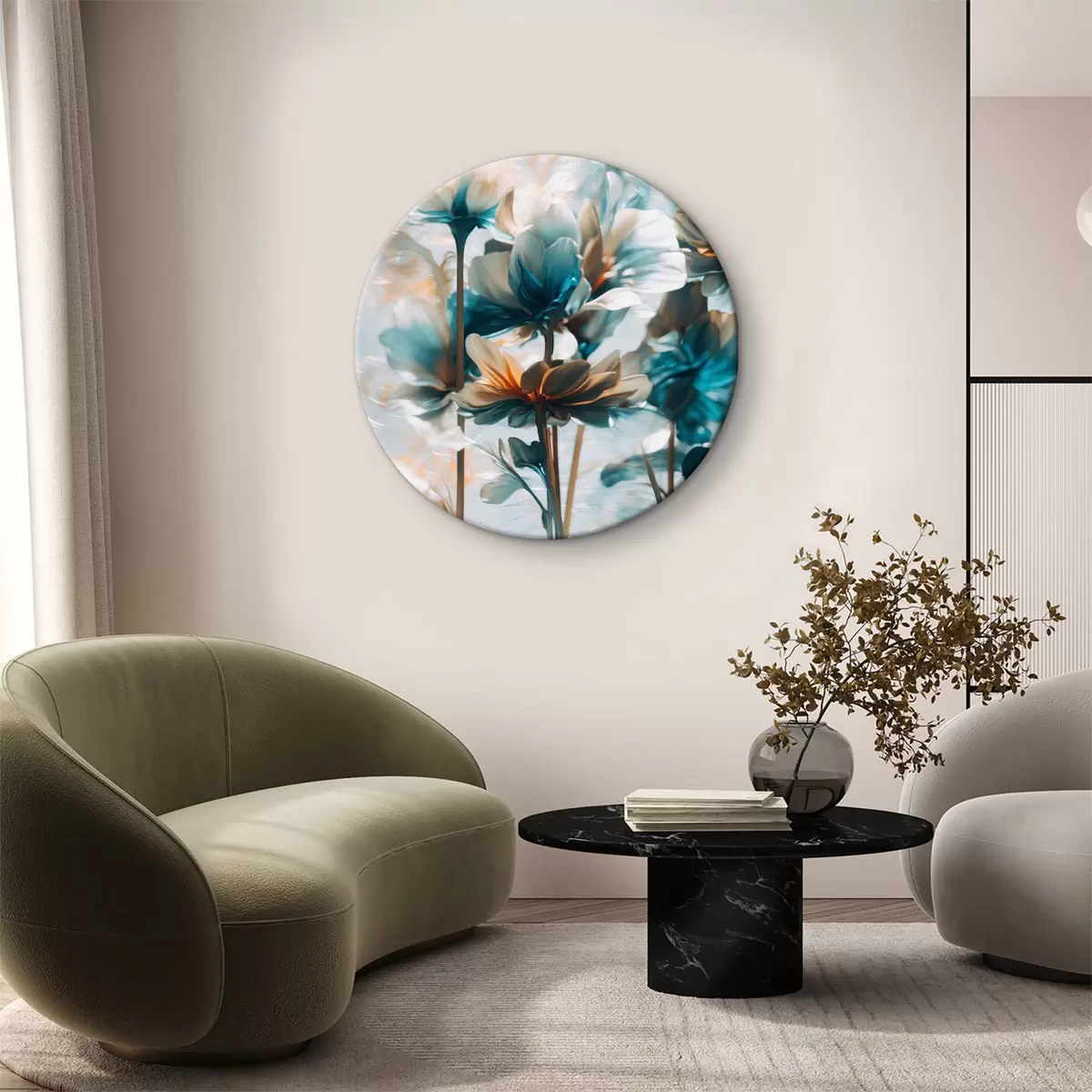 Runde Wandbilder Blumen auf unscharfen Hintergrund r39606