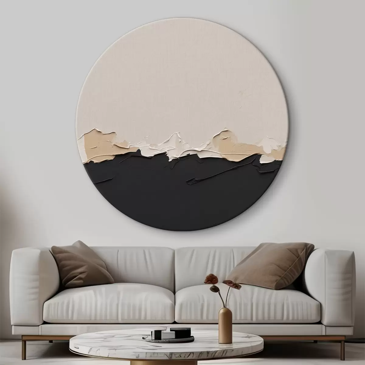 Runde Wandbilder Abstraktes Gemälde mit weißen und schwarzen Farben r39609