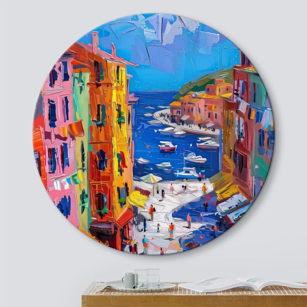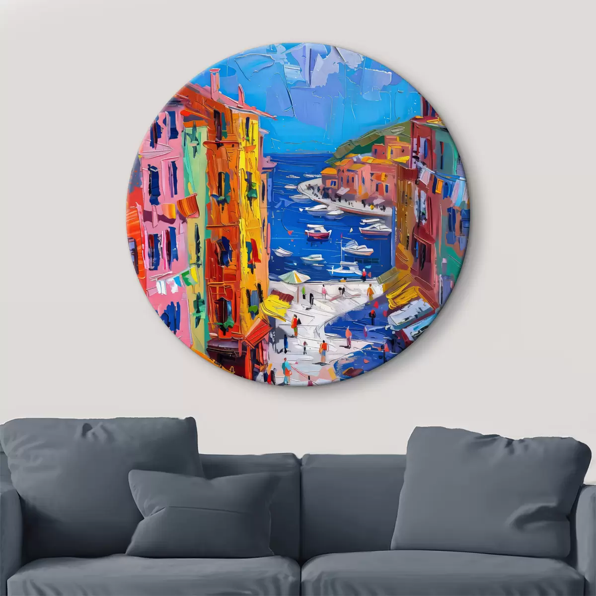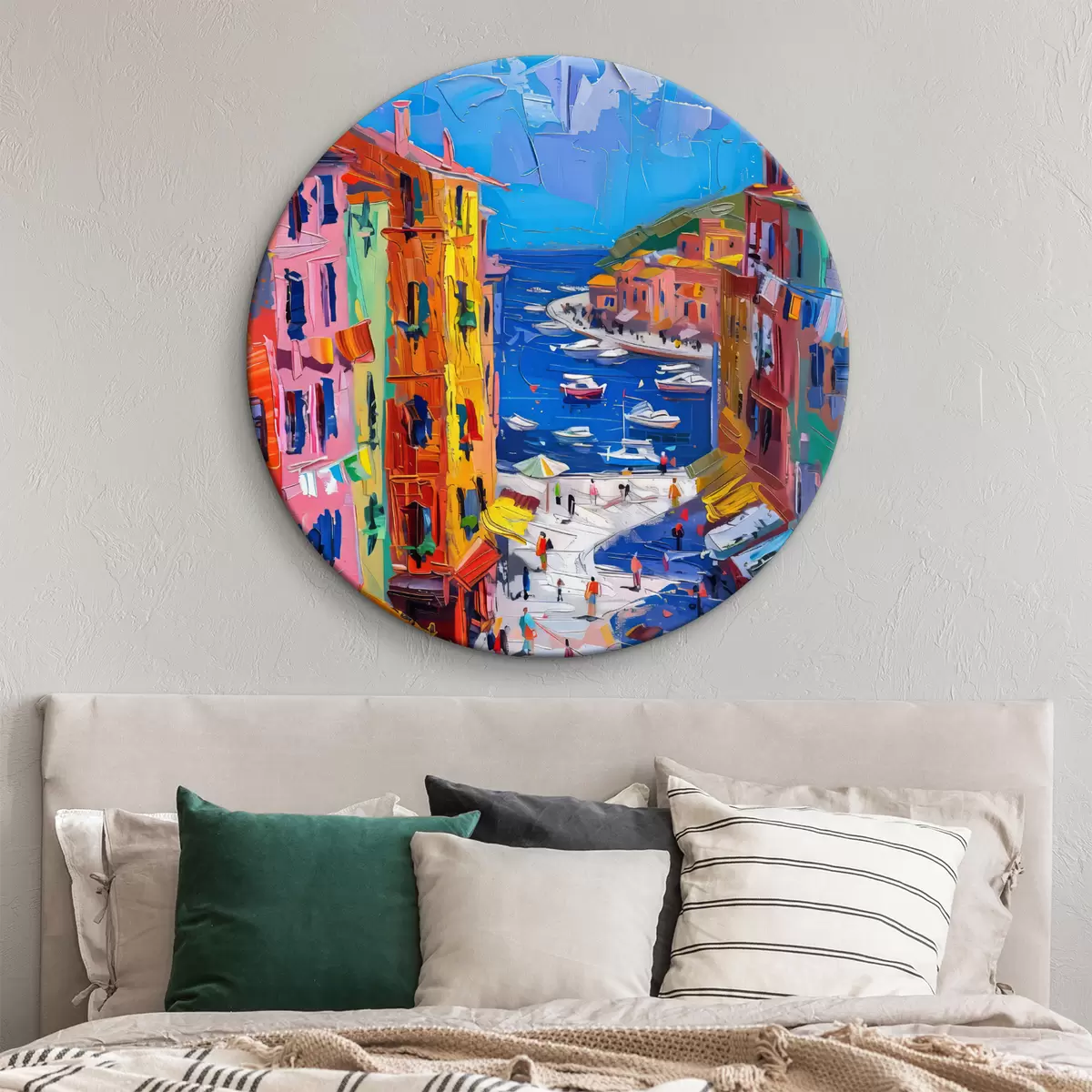 Runde Wandbilder Französisches Dorf in der Abenddämmerung: eine Impression im Stil von Van Gogh Nr r39627