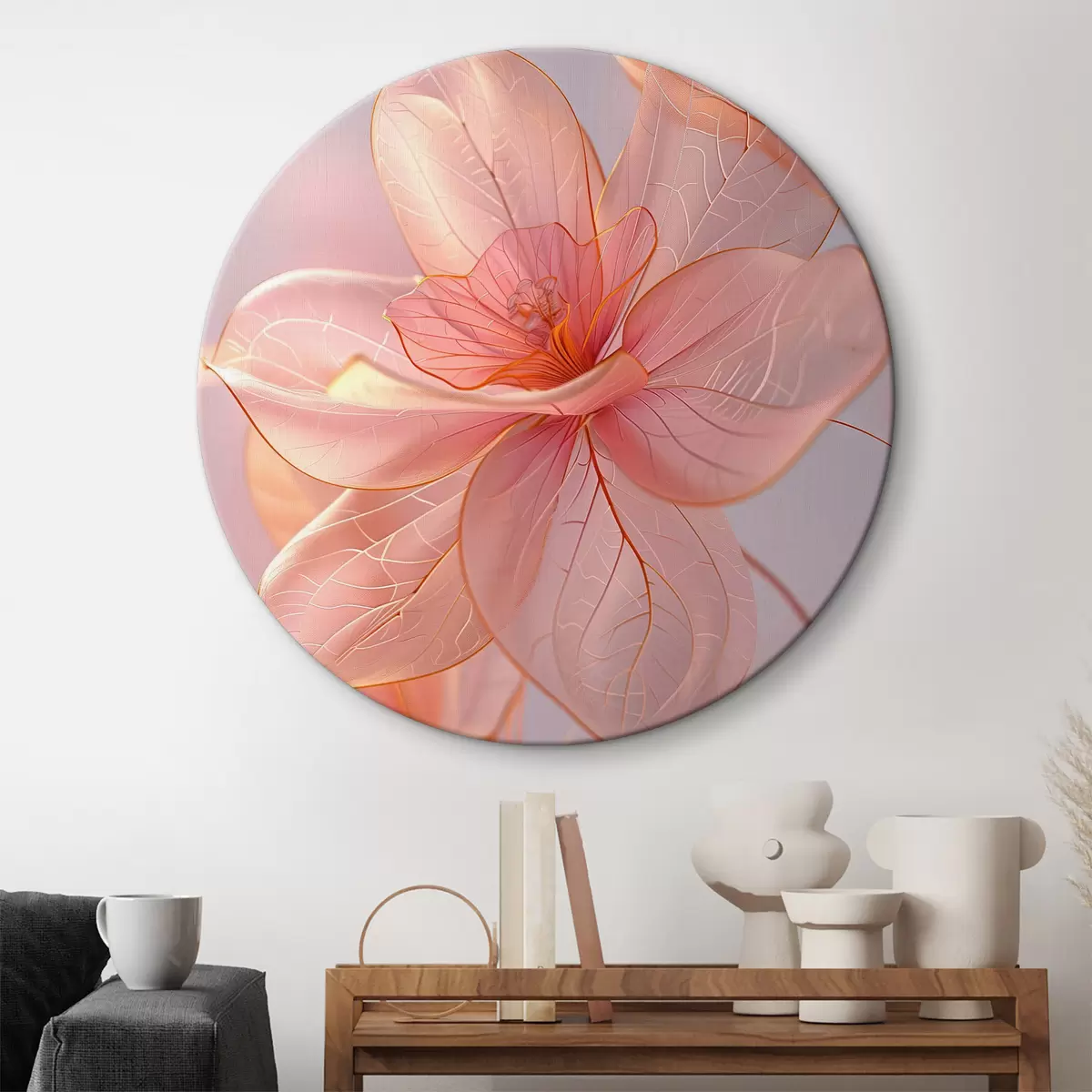 Runde Wandbilder Zarte rosa Blüten mit sanften Linien: Minimalismus und feine Details r39632