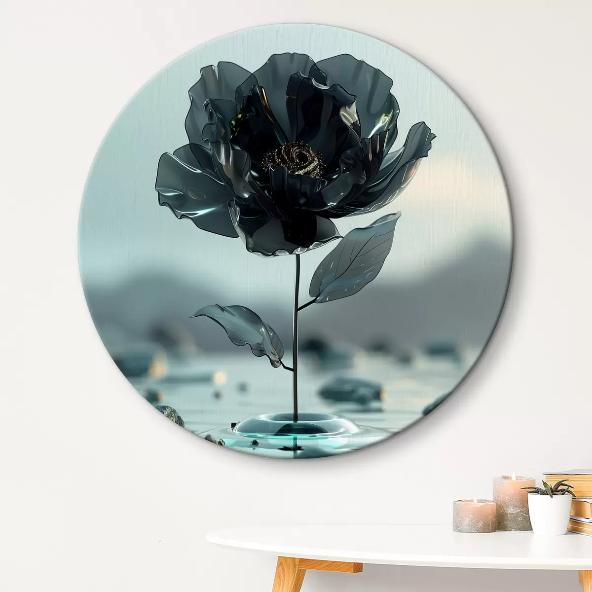 Runde Wandbilder Schwarze Blume aus Glas: Pop-Surrealismus und viktorianischer Stil r39633