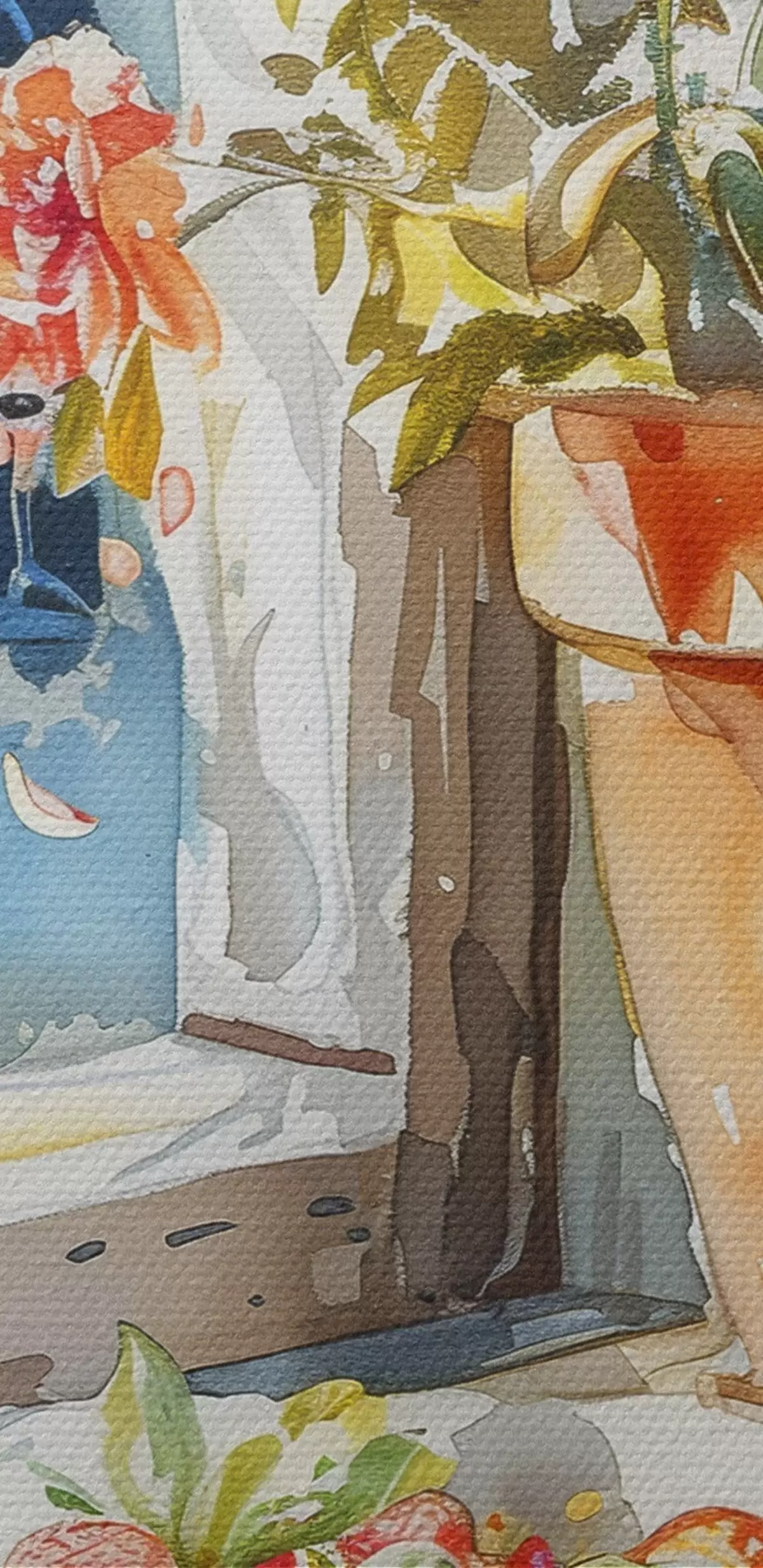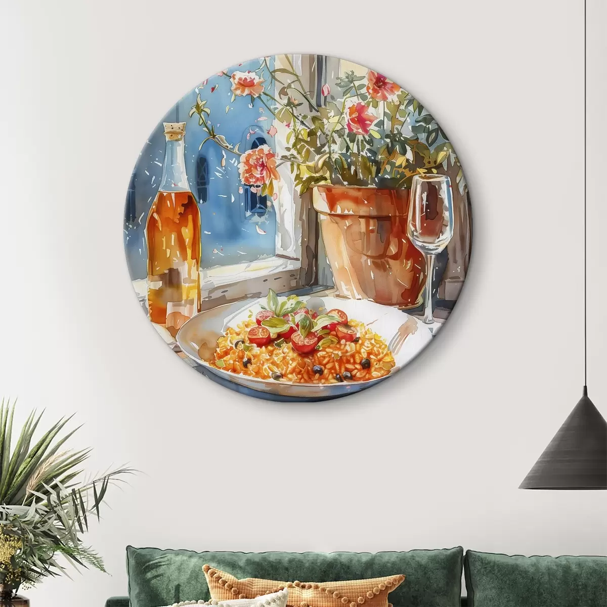 Runde Wandbilder Aquarellzweig mit Risotto, Sommerfarben, mediterran, Blumentopf r39705