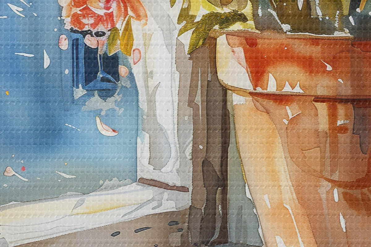 Das feine Fadengeflecht auf dieser Leinwand ähnelt der Oberfläche von professionellen Künstlerleinwänden.